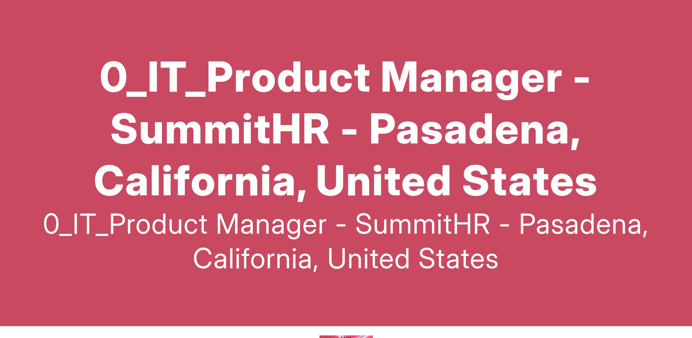 0_IT_Product Manager - SummitHR - Pasadena, California, United States