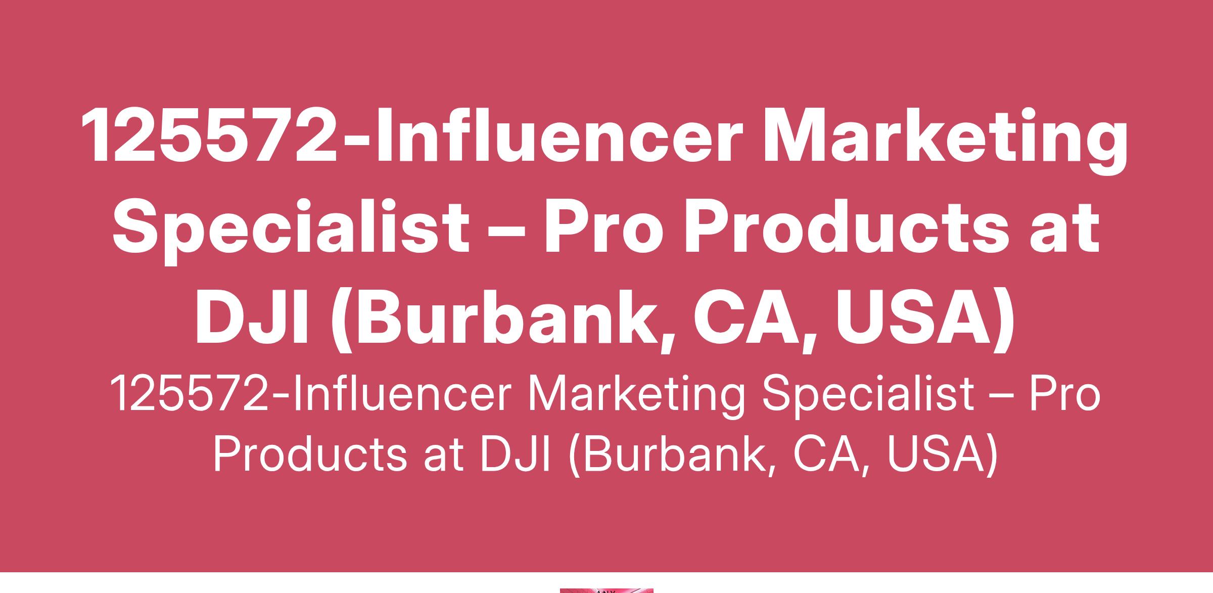 125572-Influencer Marketing Specialist – Pro Products at DJI (Burbank, CA, USA)