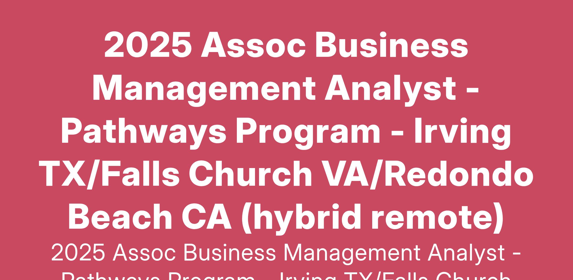2025 Assoc Business Management Analyst - Pathways Program - Irving TX/Falls Church VA/Redondo Beach CA (hybrid remote)