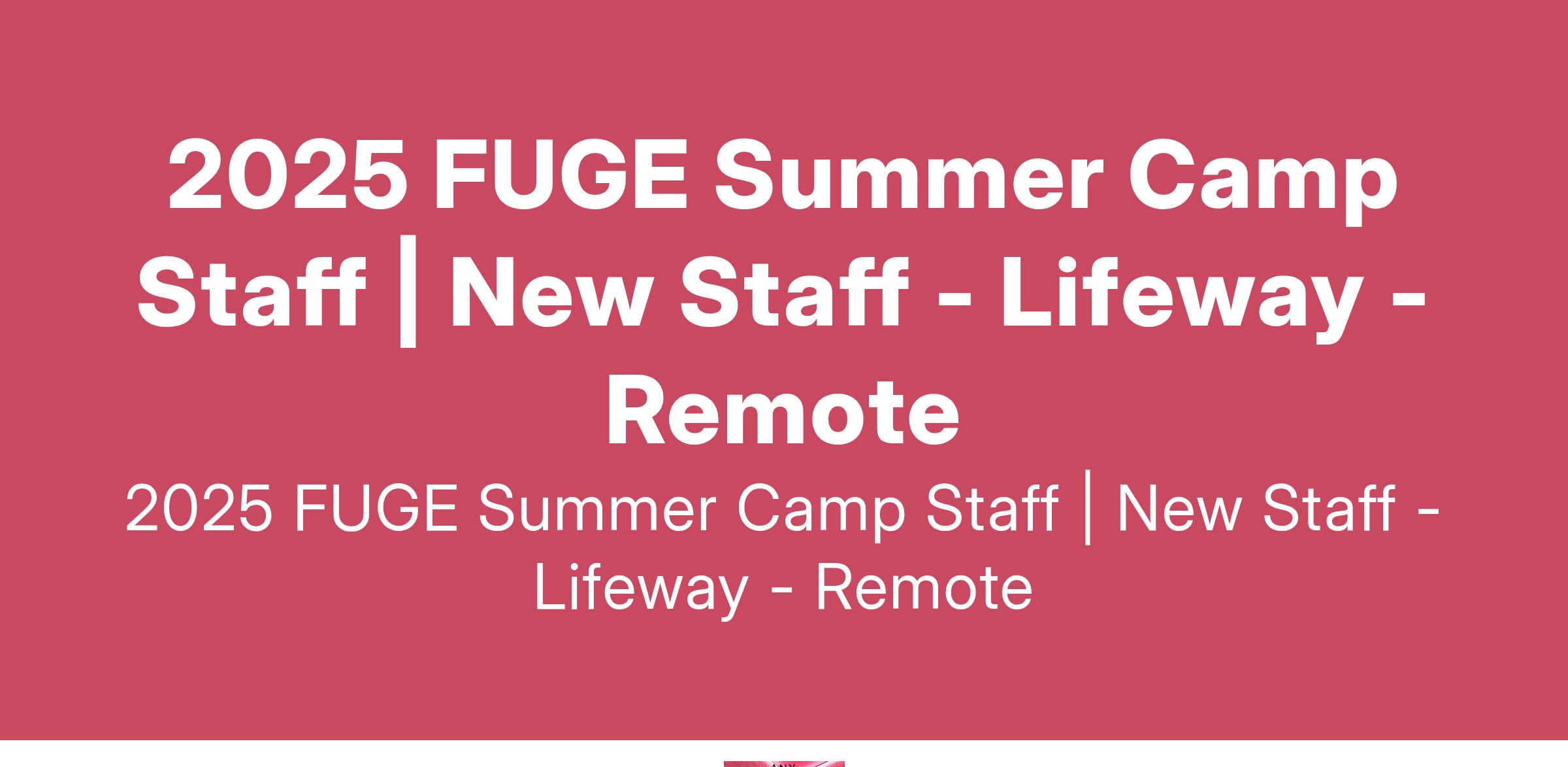 We are looking for college students and young adults who love the Lord, have a desire to serve, and are passionate about students. If you are chosen to work FUGE Camps this summer, you will work on a team committed to seeing students experience life-change. If you are looking for the most rewarding and exhausting student ministry experience of your life, we welcome your application!