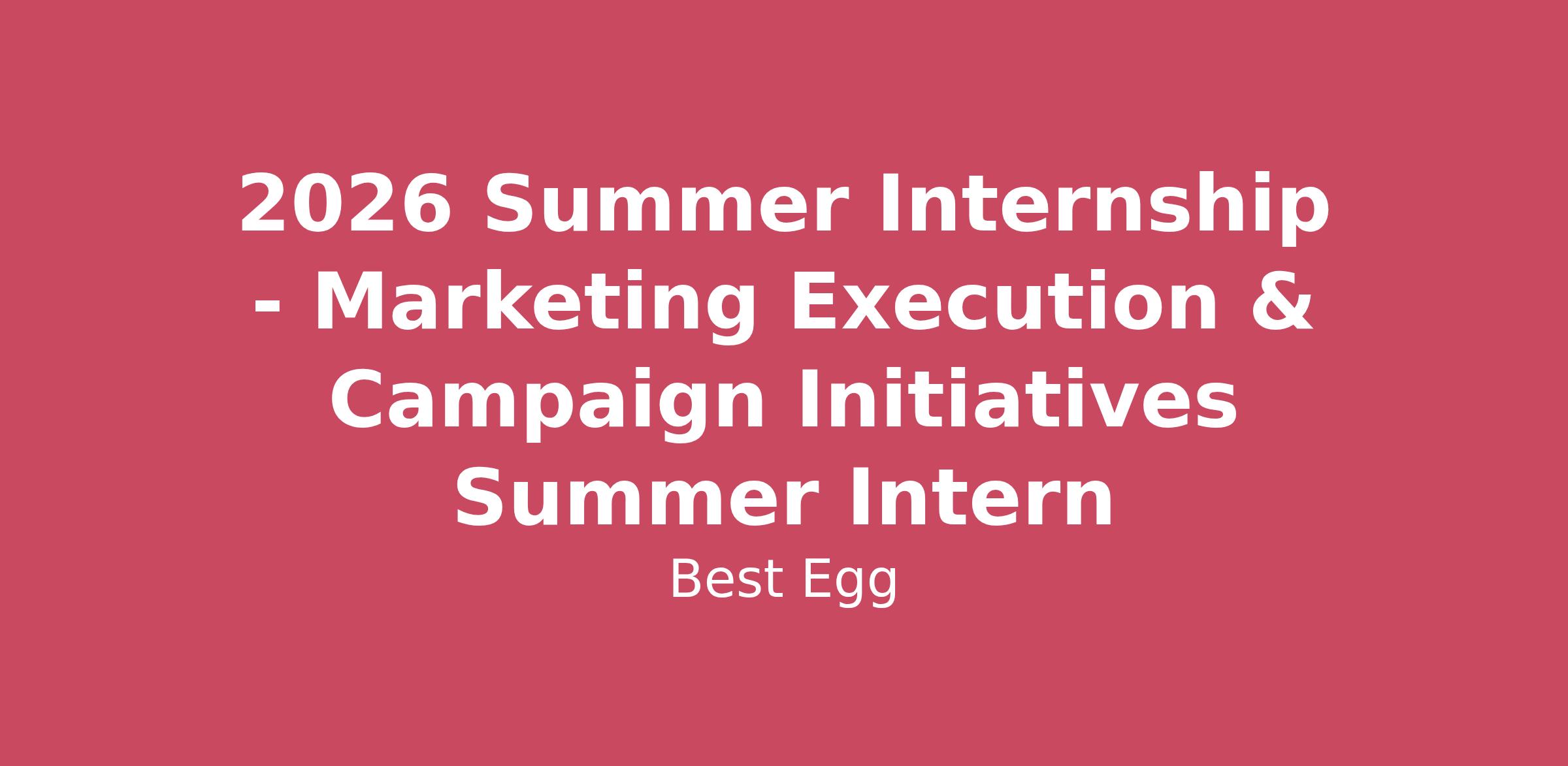 Best Egg is a market-leading, tech-enabled financial platform helping people build financial confidence through a variety of installment lending solutions and financial health tools. We aim to help customers make smart financial decisions and stay on track, so they can be money confident no matter what life throws at them.We offer top-tier benefits and growth opportunities in a culture built on our core values:Put People First – We foster an inclusive, flexible, and fun workplace.Create Clarity – Open communication drives trust and results.Get Things Done – We focus, prioritize, and deliver with excellence.Deliver with Heart – We lead with kindness, humility, and strong teamwork.Listen to Our Customers – Their needs drive our innovation. Barclays has entered into an agreement to acquire Best Egg with closing expected to take place in Q2 2026. This acquisition will give us the resources and capital to continue on our mission and drive our strategy forward. With an aligned culture, lower cost of funds, and increased employee growth opportunities across a global brand, we are excited about the future of the Best Egg brand under the Barclays umbrella.We are looking for collaborative, innovative team players who like to solve problems. There will also be immense opportunities for those willing to dive in. If you're inspired by growth and want to make a real difference, Best Egg is the place for you. We’re proud to be an equal opportunity employer committed to building a diverse, inclusive team.We are seeking a motivated and detail-oriented Marketing Summer Intern to join our Marketing team for the summer. This internship provides an excellent opportunity to gain hands-on experience supporting marketing management and implementation initiatives within a dynamic fintech environment. The selected candidate will work closely with marketing team members and project management partners to assist in the execution of key initiatives, coordination of deliverables, and support of broader marketing activities. This role is well suited for an individual with strong organizational skills, attention to detail, and an interest in developing practical experience in financial services marketing\nKey Responsibilities • Support the execution and ongoing management of marketing initiatives and campaigns • Assist with marketing implementation activities, including coordination across internal teams and tracking of deliverables • Provide support for a credit card Change in Terms (CIT) initiative and other customer communication efforts • Partner with a project manager to support timelines, meeting coordination, follow-up items, and project documentation • Conduct research, compile data, and prepare reports, summaries, or presentations to support team objectives • Provide administrative and project-related support for additional marketing initiatives, as needed Qualifications • Currently pursuing a bachelor's degree in Marketing, Business, Engineering, or a related field • Effective written and verbal communication skills • Ability to manage multiple responsibilities and meet deadlines in a professional environment • Proficiency in Microsoft Office applications, including Excel and PowerPoint • Demonstrated initiative, adaptability, and ability to work collaboratively across teams • Interest in fintech, financial services, or consumer marketing is preferred What the Intern Will Gain• Practical experience supporting marketing management and implementation within the fintech industry • Exposure to cross-functional collaboration and project coordination • Opportunity to contribute to meaningful business initiatives in a professional setting • Mentorship and development within a corporate marketing environment\n$24 - $24 an hour\nEmployee BenefitsBest Egg offers many additional benefits for our employees, including (but not limited to):· Pre-tax and post-tax retirement savings plans with a competitive company matching program· Generous paid time-off plans including vacation, personal/sick time, paid short-- term and long-term disability leaves, paid parental leave, and paid company holidays · Multiple health care plans to choose from, including dental and vision options· Flexible Spending Plans for Health Care, Dependent Care, and Health Reimbursement Accounts· Company-paid benefits such as life insurance, wellness platforms, employee assistance programs, and Health Advocate programs· Other great discounted benefits include identity theft protection, pet insurance, fitness center reimbursements, and many more!#LI-REMOTEIn compliance with the CCPA, Best Egg is fully committed to handling the personal information and data of employees and job applications responsibly with respect and due care. Review our CCPA Employee Policy here