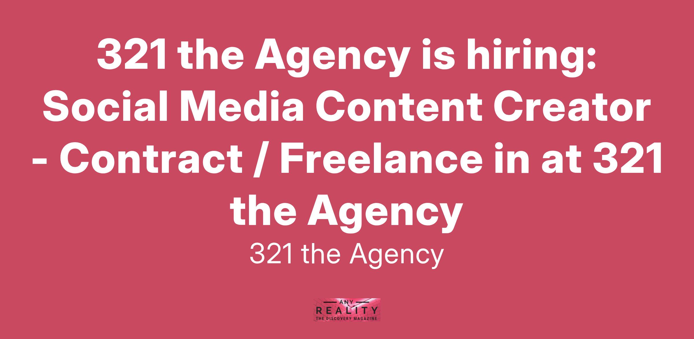 321 the Agency is hiring: Social Media Content Creator - Contract / Freelance in at 321 the Agency