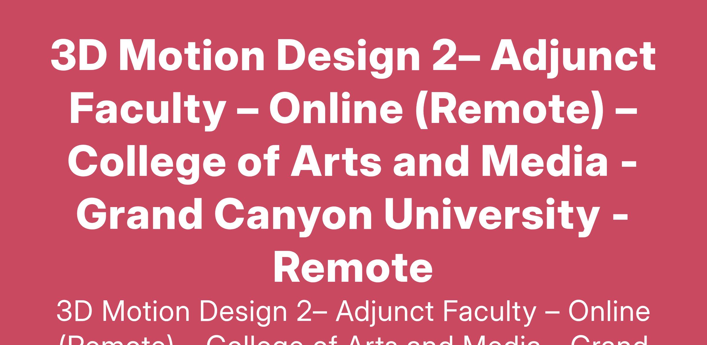 - Minimum: bachelor’s degree in animation, motion graphics, 3D modeling, graphic design, advertising, or an equivalent degree in the visual arts