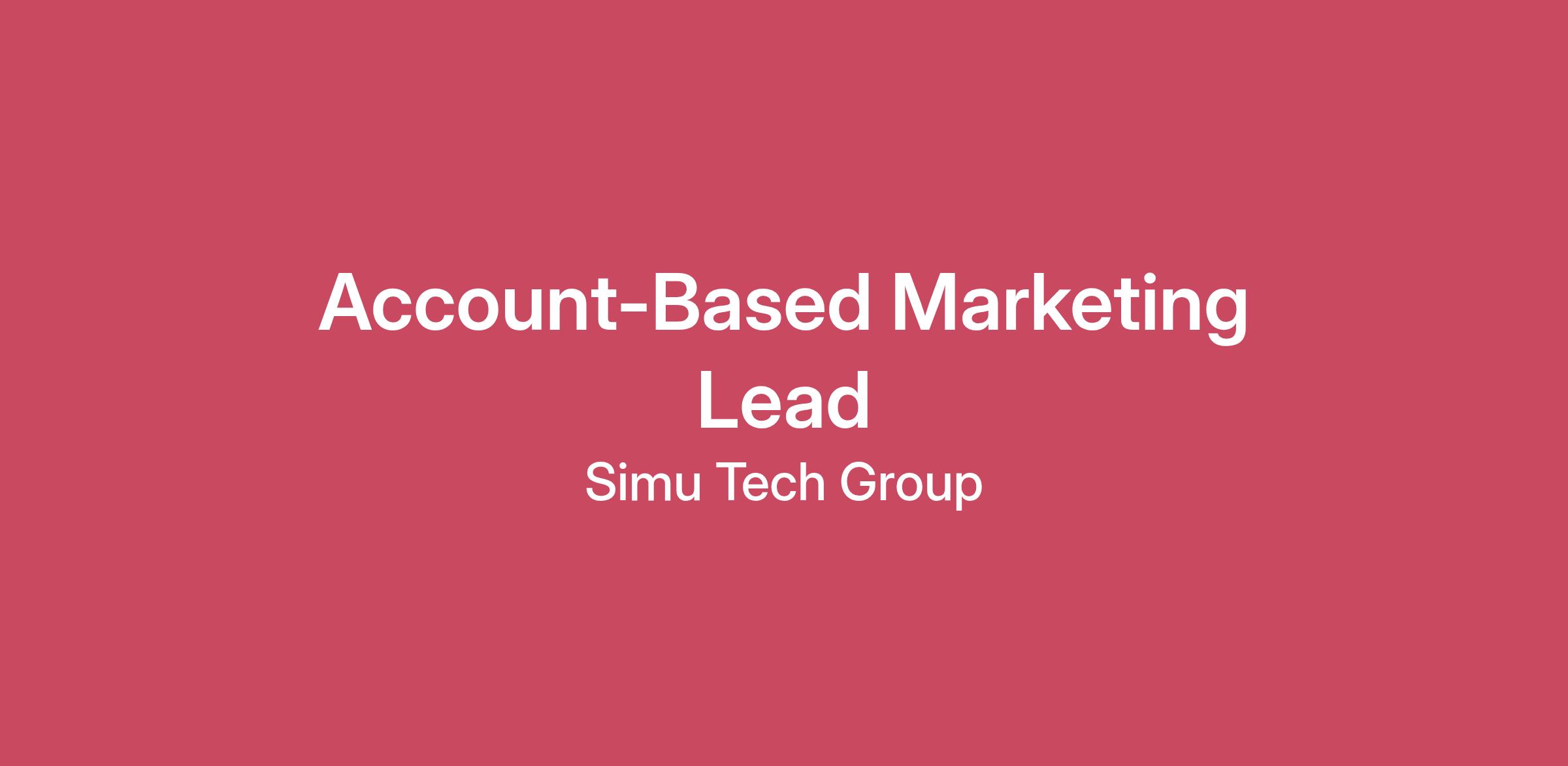 Why You’ll Love Working Here At SimuTech Group, we are driving innovation and changing the world through the power of engineering simulation. Our growing team of energetic, tech‑savvy professionals work hard every day to inspire our clients to push the boundaries of innovation and deliver transformational products. If you are motivated and driven by a culture where top‑notch work ethic and passion are rewarded, then a career with SimuTech Group may be for you. As the Account-Based Marketing Lead, you will operate at the intersection of marketing strategy, sales alignment, and analytics—playing a critical role in accelerating pipeline growth and deepening engagement within SimuTech Group’s highest‑value accounts. The Benefits of Being Part of Our Team Unmatched Health Coverage: Zero‑cost in‑network medical care with no premiums, deductibles, or copays for you and your familyComplete Dental & Vision Benefits: 100% premium coverage for dental and vision insuranceWellness Programs Tailored to You: Access to free workouts, personalized training sessions, nutritional counseling, mindfulness programs, stress management, and more with our corporate wellness coach What Makes This Role Great? Own and shape SimuTech Group’s account‑based marketing strategy for high‑value, revenue‑driving accountsPartner closely with Sales and executive stakeholders to influence pipeline, deal velocity, and expansionDesign highly personalized, data‑driven 1:1 and1: few programs with measurable revenue impactWork cross‑functionally with Product Marketing, Operations, and Revenue teams to orchestrate cohesive account journeysOperate in a fast‑paced, growth‑focused environment that values innovation, accountability, and results What You’ll Do Lead ABM Strategy & Planning Own the strategy, planning, and execution of 1:1 and1: few ABM programs aligned to Sales priorities and revenue goalsPartner closely with Sales to define target account lists, buying‑committee personas, and engagement objectivesDesign personalized, multi‑channel account journeys across email, paid media, content, events, and direct outreachIdentify opportunities for expansion, upsell, and cross‑sell within priority accountsScale successful programs into broader initiatives when appropriateExecute & Orchestrate ABM Programs Create tailored campaign assets including messaging briefs, landing pages, nurture flows, and sales playsCoordinate multi‑channel outreach such as targeted digital advertising, direct mail, executive events, and workshopsLaunch, manage, and optimize ABM programs using marketing automation, CRM, and ABM platformsDevelop repeatable ABM playbooks for account clusters and vertical segmentsEnable Sales & Cross‑Functional Teams Collaborate with Sales to align messaging, outreach cadence, and account engagement strategiesEquip Sales with personalized content, account insights, and recommended next stepsPartner with Product Marketing to refine value propositions and align content to account and persona needsWork closely with Marketing Operations to ensure data structure, attribution, scoring, and reporting support ABM initiativesMeasure Performance & Optimize Track account engagement, buying‑committee activity, pipeline progression, and influenced revenueBuild and maintain dashboards that measure coverage, engagement, penetration, velocity, and ROIReport insights and performance to Sales and Marketing leadership, recommending optimization opportunitiesEnsure all ABM initiatives are tied to measurable business outcomes What You’ll Bring Education & Experience 3–5+ years of B2B marketing experience, including 1–2+ years in account‑based marketing or targeted demand generationProven success executing 1:1 and/or1: few ABM programsStrong understanding of enterprise B2B buyer journeys, complex sales cycles, and buying committeesExperience with ABM platforms (e.g., 6 sense, Demand base, Terminus) and marketing automation toolsStrong project management skills with the ability to manage multiple high‑touch initiativesSkills Strategic Thinking: Ability to translate business objectives into targeted ABM strategiesAnalytical Skills: Comfort analyzing performance data and turning insights into actionCommunication: Excellent written and verbal communication skillsCollaboration: Proven ability to partner across Sales, Marketing, and OperationsExecution Excellence: High attention to detail and follow‑through across complex campaigns Additional Benefits Short‑Term DisabilityLong‑Term Disability401(k) Plan with Employer MatchLimited Flexible Spending AccountLife InsurancePaid Time OffProfessional Development AssistanceReferral ProgramTuition ReimbursementBonus PlanPay Range: 70,000-85,000 USD (Compensation may vary outside of this range depending on a number of factors, including a candidate's qualifications, skills, competencies, experience, and location) Location: Preference will be given to candidates located near one of our office locations; however, we are open to considering qualified applicants for remote work anywhere in the United States.Take the Next Step This is an opportunity to join a forward‑thinking, growth‑oriented team where your strategic mindset, creativity, and impact will be valued. Apply today to help shape SimuTech Group’s account‑based marketing strategy and accelerate revenue growth through deeply personalized, data‑driven engagement. SimuTech Group is an Equal Employment Opportunity Employer.
