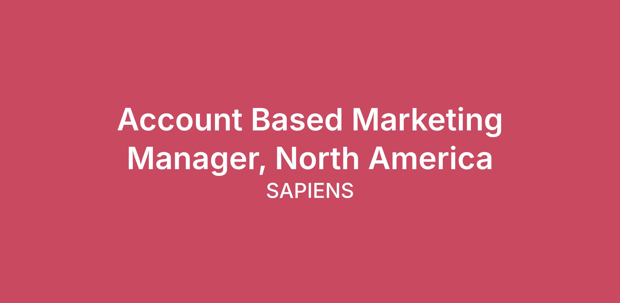 Title: Account Based Marketing Manager, North America Location: Remote Position Summary: We are seeking an Account Based Marketing Manager, North America to lead and own Account-Based Marketing (ABM) and demand generation initiatives aligned to revenue growth. This role is responsible for translating strategy into measurable pipeline impact and working closely with Sales, SDRs, Product Marketing, and relevant partners to drive results. This is a high-impact role within a global, performance-driven organization. The ideal candidate brings a balance of strategic thinking, hands-on execution, and strong analytical rigor. Key Responsibilities ABM Strategy & Ownership Own and execute the North America ABM strategy aligned to revenue and sales priorities. Develop and manage ABM motions across Tier 1 and Tier 2 accounts Translate business objectives into clear, scalable ABM programs. Demand Generation & Campaign Leadership Lead multi-channel demand generation campaigns across: Paid media SEO / AEO / GEO Email and marketing automation Content and digital channels Partner with agencies and vendors while retaining accountability for performance, ROI, and outcomes. Ensure campaigns are aligned with sales plays, account plans, and regional priorities. Sales & Cross-Functional Alignment Partner closely with Sales leadership, account teams, SDRs, and regional marketing. Align on target accounts, messaging, campaign timing, and follow-up strategies. Act as a strategic marketing partner focused on revenue impact, not just activity. Data, Analytics & Optimization Own performance reporting and insights across engagement, conversion, pipeline contribution, and ROI. Use data to identify opportunities, optimize campaigns, and improve efficiency. Continuously test, learn, and iterate to drive improved outcomes. AI-Driven Marketing Enablement Leverage AI tools to improve targeting, personalization, messaging, and campaign effectiveness. Identify practical ways to incorporate AI into ABM execution and performance optimization. Success Metrics Increased pipeline and revenue contribution from target accounts Strong engagement and conversion rates across ABM campaigns Improved campaign efficiency and return on investment Clear alignment and credibility with Sales and cross-functional stakeholders Data-driven reporting that demonstrates marketing’s impact on revenue Required Qualifications 5–8+ years of experience in B2B ABM, demand generation, or growth marketing Proven experience owning and leading ABM programs tied to revenue outcomes Strong understanding of: Paid media strategy ABM frameworks and segmentation Multi-channel demand generation Experience with HubSpot, Salesforce, and ABM platform Strong analytical and performance-optimization skills Comfortable operating in a KPI-driven, performance-focused environment Experience leveraging AI tools to enhance marketing effectiveness Strong communication skills and ability to partner with senior sales stakeholders Why This Role Ownership of North America ABM strategy within a global organization Direct visibility into how marketing drives pipeline and revenue Close collaboration with sales and demand generation leadership High level of autonomy and strategic influence At Sapiens, we are dedicated to building a diverse, equitable, and inclusive work environment. We believe that diverse perspectives, backgrounds, and experiences make us stronger and more innovative. We are committed to creating a culture where every individual is valued and can thrive regardless of their race, ethnicity, gender, age, sexual orientation, gender identity, religion, disability, or any other characteristic. Sapiens is an E-Verified & Equal Opportunity / Affirmative Action Employer. All qualified applicants will receive consideration for employment without regard to race, color, religion, sex, sexual orientation, gender identity, national origin, disability, or status as a protected veteran. #LI-Remote