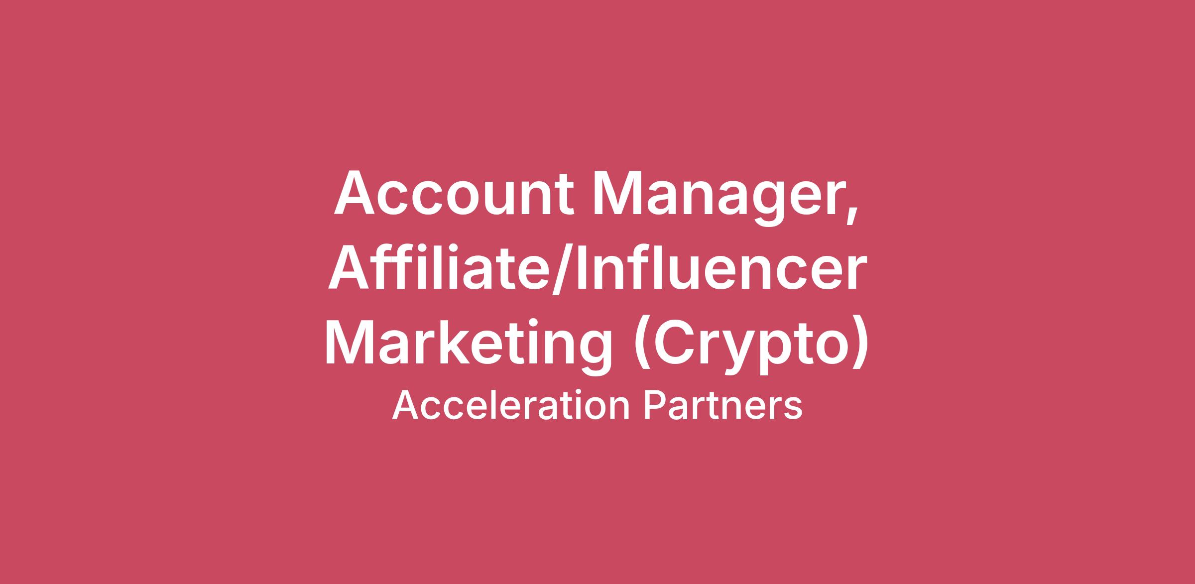 THE ROLE: Account Manager, Affiliate/Influencer Marketing (Crypto) As the partner marketing landscape continues to evolve, various channels and tactics are coming together in exciting ways, and Acceleration Partners is leading the charge. We are seeking an Affiliate/Influencer Marketing Manager to provide premium quality service to diverse brands eager to develop affiliate/influencer programs at scale within their affiliate channels. This person will be directly responsible for managing the client relationship, as well as owning the development and execution of influencer program strategy with the team . Ownership of program strategy includes but is not limited to designing influencer recruitment strategies, content strategies, communication strategies, incentive strategies and optimization strategies focused on the monetization of content across social media. Strategies are expected to be customized to each client’s unique goals and objectives. The successful candidate will have strong experience in the development and end-to-end management of KPI-driven Influencer marketing campaigns for consumer products and/or service companies. They will be skilled at analyzing program data and spotting performance trends to continuously refine their strategic approach and scale outcomes. They will be well-versed in negotiating media packages with influencers and contracting longer-term agreements. They will have working knowledge of the overall partner marketing landscape, including affiliate, and the ability to both develop comprehensive strategies as well as lead a team to capably execute . They will have knowledge in the crypto or finance space. They will also be a self-starter that can confidently plug in to any challenging situation with ease and can balance competing priorities well.TOP 5 JOB RESPONSIBILITIES: PROGRAM STRATEGY & EXECUTION – Manages successful influencer programs by developing custom strategies and tactical plans for achieving client’s goals and objectives. Keeps a close pulse on program performance, budget spend, and goals/budget pacing in real time to ensure program stays on-track to meet key objectives and spend targets. Proactively presents strategic recommendations to course-correct performance and/or spend to ensure client goals are met. Consistently demonstrates intellectual curiosity, challenging the status quo, regularly pitching new, or out of box opportunities. Maintains a close pulse on relevant influencer industry trends and applies to strategy to optimize success where possible. CLIENT SERVICE & COMMUNICATION - Consistently provides superior client service, acts as a point of contact, and escalates issues or key risks as appropriate. Works with teams to ensure client develops trust in AP by delivering client outputs and communications in the AP way. Develops and nurtures excellent relationships, reflected in very high client satisfaction and retention rates, and an average 8.5 client rating. REPORTING & ANALYSIS – Uses data strategically and nimbly; all analysis or data shared to clients is consistently accurate and precise. Consistently draws relevant and accurate conclusions using data to identify trends, analyze program outcomes, and provide client insights and recommendations to reach or exceed goals. Performs robust analysis of influencer program performance using multiple data points to present data-driven recommendations to clients. Well-versed at conducting analysis across upper-funnel social analytics (i.e., impressions, engagement rate, CPM, etc.) and mid-to-lower funnel metrics (i.e., CTR, CVR, Revenue, ROI, etc.) to present a full-funnel view of program outcomes and value derived from partnerships. Able to educate clients across all these areas as well, if needed. INFLUENCER PARTNERSHIP OPTIMIZATION – Designs influencer recruitment strategies, communication strategies, content strategies, incentive strategies and optimization strategies aimed at fostering long-term partnerships with the right creators/audiences and enabling them to drive lower-funnel value for clients (i.e., site traffic, revenue, ROI). Negotiates longer-term media packages with creators and manages fixed fee-based investments on behalf of clients when necessary. Equipped to field client questions and concerns regarding alignment of influencer partnerships, influencer strategy, the monetization of content, and the expected return on investments. Trains, coaches, and develops influencers as needed by providing education on the affiliate landscape and best practices for optimizing their success not only within the scope of a particular campaign, but within the larger scope of the affiliate channel. PORTFOLIO MANAGEMENT - Manages multiple influencer marketing programs with solid organizational skills and the ability to focus on and prioritize tasks based on client objectives. Has full grasp of each client’s scope of work, delivering what is due under terms, and strategically pushing back when required. Maintains ability to identify new opportunities to drive client success while conjunctively identifying possible goal misalignments, getting to the root of an issue, and proactively bringing solutions to resolve. WHAT SUCCESS LOOKS LIKE: BY 2 MONTHS… the Affiliate/Influencer Marketing Manager has a clear understanding of each client’s goals and objectives, their target market, and the unique strategic approach to each of their influencer programs. The Affiliate/Influencer Marketing Manager has formed strong relationships with client contacts and established themselves as the main point of contract, leading routine calls and taking ownership of client deliverables and oversight of program operations and strategy execution. The Affiliate/Influencer Marketing Manager is becoming familiar with AP’s tools and solutions, and the wider affiliate landscape, and is growing knowledgeable of affiliate tactics and methodologies that are applicable to the strategic approach and design