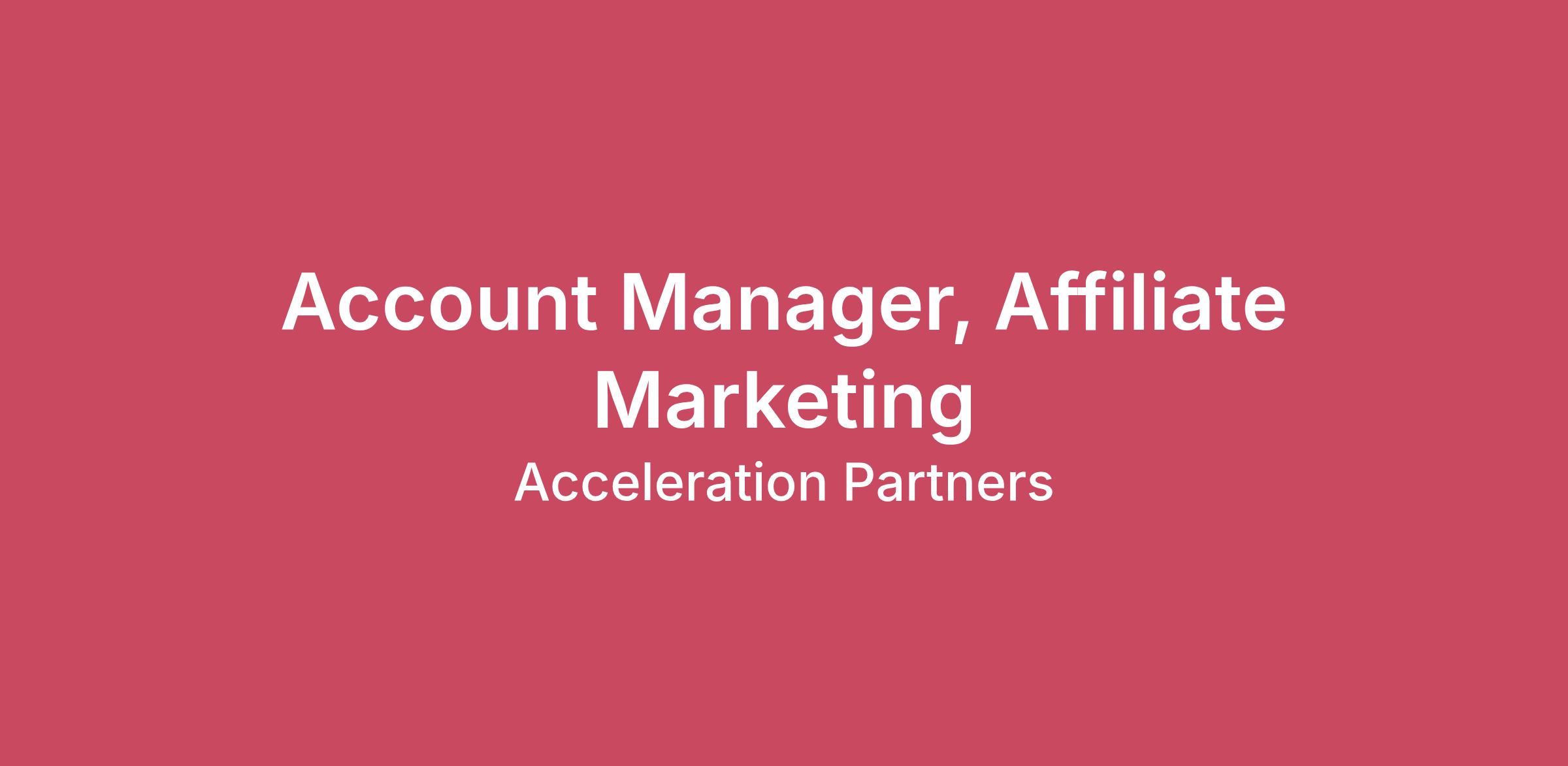 Account Manager, Affiliate MarketingThe Account Manager, Affiliate Marketing position is a remote, work-from-home role, as are all positions at Acceleration Partners. Some travel is required for client meetings, internal meetings, conferences, and other events.The RoleAcceleration Partners is accepting applications for Account Manager roles within our growing Affiliate Marketing team. As an Account Manager, you will take ownership of client relationships, manage affiliate marketing campaigns, and work closely with senior leaders to develop and execute strategies that ensure long-term client success. Additionally, you will lead recruitment efforts, engage in networking opportunities, and mentor junior team members. Top 5 Responsibilities:Client Engagement & Relationship Building Collaborate closely with Account Directors and/or Senior Account Managers to cultivate strong client relationships by consistently delivering high-quality outputs. Lead discussions on partnership opportunities in meetings and calls, using data insights to pitch innovations and align strategies with client business objectives. Proactively contribute to client engagement by managing the day-to-day execution of campaigns, ensuring smooth operations and assisting senior team members in maintaining and enhancing client relationships Data Analytics & Strategic Recommendations Analyze performance data to generate actionable insights that drive client strategy and campaign optimizations. Demonstrate the ability to forecast effectively, using data to predict trends and inform client decision-making. Present data-driven recommendations to ensure alignment between client KPIs and broader business goals. Campaign & Strategic Partner Management Focus on nurturing and managing relationships with key partners to ensure alignment with client objectives, emphasizing long-term partnership success. Attend industry events, conferences, and networking opportunities to build relationships and discover new partners, ensuring alignment with client needs and market trends. Proactively suggest new ideas and approaches that contribute to client success and long-term growth. Operational Execution & Tactical Adjustments Execute affiliate marketing strategies across multiple accounts, ensuring they are aligned with client objectives and driving measurable outcomes. Continuously monitor portfolio performance and adjust tactics to optimize client success. Leadership, Mentorship & Team Development Mentor Associate Account Managers, fostering a culture of collaboration and strategic execution. Delegate tasks effectively, promoting efficiency and professional development across the team. What Success Looks LikeBy 6 Months You will be supporting multiple client accounts, collaborating with senior team members to build strong relationships with key contacts. You will ensure smooth communication and assist with client strategy and account-related questions as needed. You will be using data insights to optimize client campaigns, regularly presenting actionable recommendations to clients. Client KPIs will be consistently met, and client satisfaction scores will be 8+. By 1 Year You will take full accountability for the success of client programs, managing strategic execution and maximizing account performance. You will coach Associate Account Managers to develop their skills and challenge the status quo, contributing to the growth of the team. Client satisfaction will remain high, with Net Promoter Scores consistently at 8+. Qualities of the Ideal Candidate Strong sense of curiosity Critical thinker Confident and comfortable being uncomfortable Flexible, resilient, coachable Relationship and service oriented Proactive and outcome oriented Strong work ethic and personal standards Minimum Qualifications & Skills 3-5 years of online marketing, e-commerce, or affiliate marketing experience. Direct affiliate marketing experience (agency, in-house, or network) required. Bachelor’s degree or equivalent work experience. Ability to travel up to 20%. Proficient in Excel and comfortable analyzing data. Experience with Affiliate Networks (e.g., ShareASale, Commission Junction, Impact) is a plus. WHY ACCELERATION PARTNERS?  Acceleration Partners is the world’s largest and first-to-market Partnership Marketing Agency creating and nurturing partnerships that drive exceptional measurable outcomes for their clients. Managing clients in 40+ countries, AP’s global team of 300+ focuses on data-driven strategies that connect brands to the right consumers through affiliate and influencer All of our work is supported by APVision, our proprietary technology suite which leverages the largest dataset of any agency in the Partnership Marketing agency ecosystem. Serving over 200 brands—including household names like Amazon, Apple, Target, Google, Marriott, Coinbase, and Burberry—AP’s diversified team is creating what’s next in the industry by building high-performing partnership marketing programs. As the only truly integrated global partnerships agency, AP prides itself on being at the cutting edge of industry developments and leveraging proven expertise to deliver unique solutions for brands seeking sustainable growth.   AP PERKS & BENEFITS - WHAT WE OFFER  100% remote work for everyone  Group medical, dental, and vision coverage insurance (with opt-out benefits)  401K with matching  Open Paid Time Off  Summer & Holiday Wellness Breaks in July and December  Volunteer and Birthday Time Off  Focus Fridays  Paid Parental Leave Benefits  Wellness, Technology & Education Allowances  Paid sabbatical leaves, donation matching, and more!!  Target Salary is $75,000 - $85,000 depending on location and experience.   Benefits may vary based on employment status or country location.  Acceleration Partners is committed to a diverse workforce and we are an equal opportunity employer. We evaluate applicants regardless of an individual’s age, race, color, gender, r
