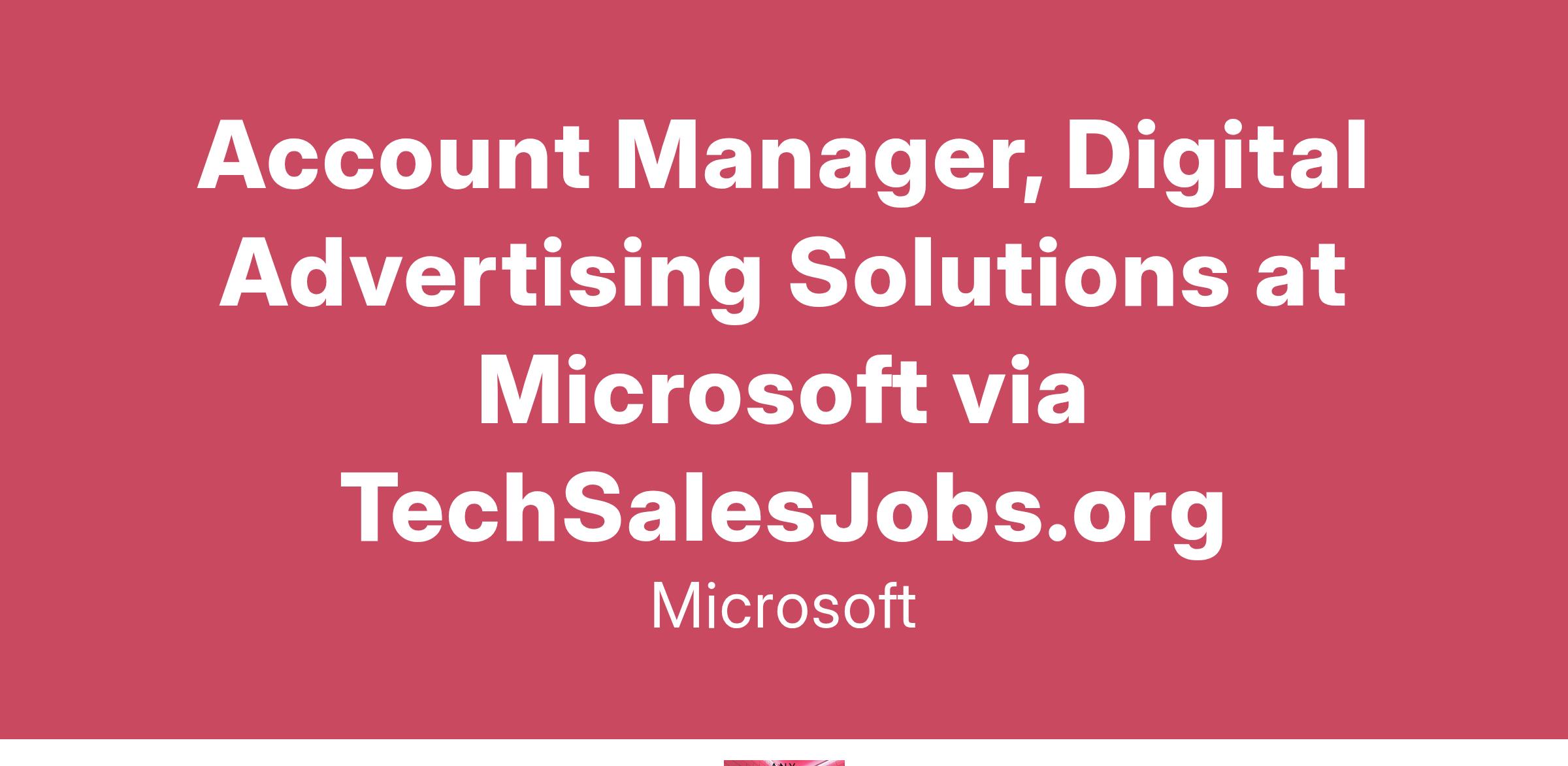 Microsoft Advertising (MSA) empowers the largest advertisers around the world to reach their maximum potential through digital advertising solutions on the Microsoft Advertising platform. We are seeking top performing Account Executives with digital advertising experience who can drive revenue and increase customer satisfaction by developing and cultivating strategic client relationships and delivering customized solutions aligning to the client’s advertising needs. In alignment with our Microsoft values, we are committed to cultivating an inclusive work environment for all employees to positively impact our culture every day. This opportunity will allow you to work closely with clients on their paid search and digital marketing strategies and tactics; leverage data and analytics to empower clients to improve their performance within Microsoft Advertising; and collaborate with internal partners on how to best serve clients.