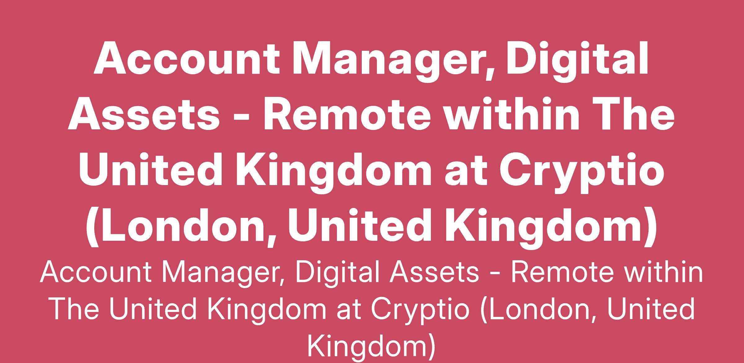 Account Manager, Digital Assets - Remote within The United Kingdom at Cryptio (London, United Kingdom)
