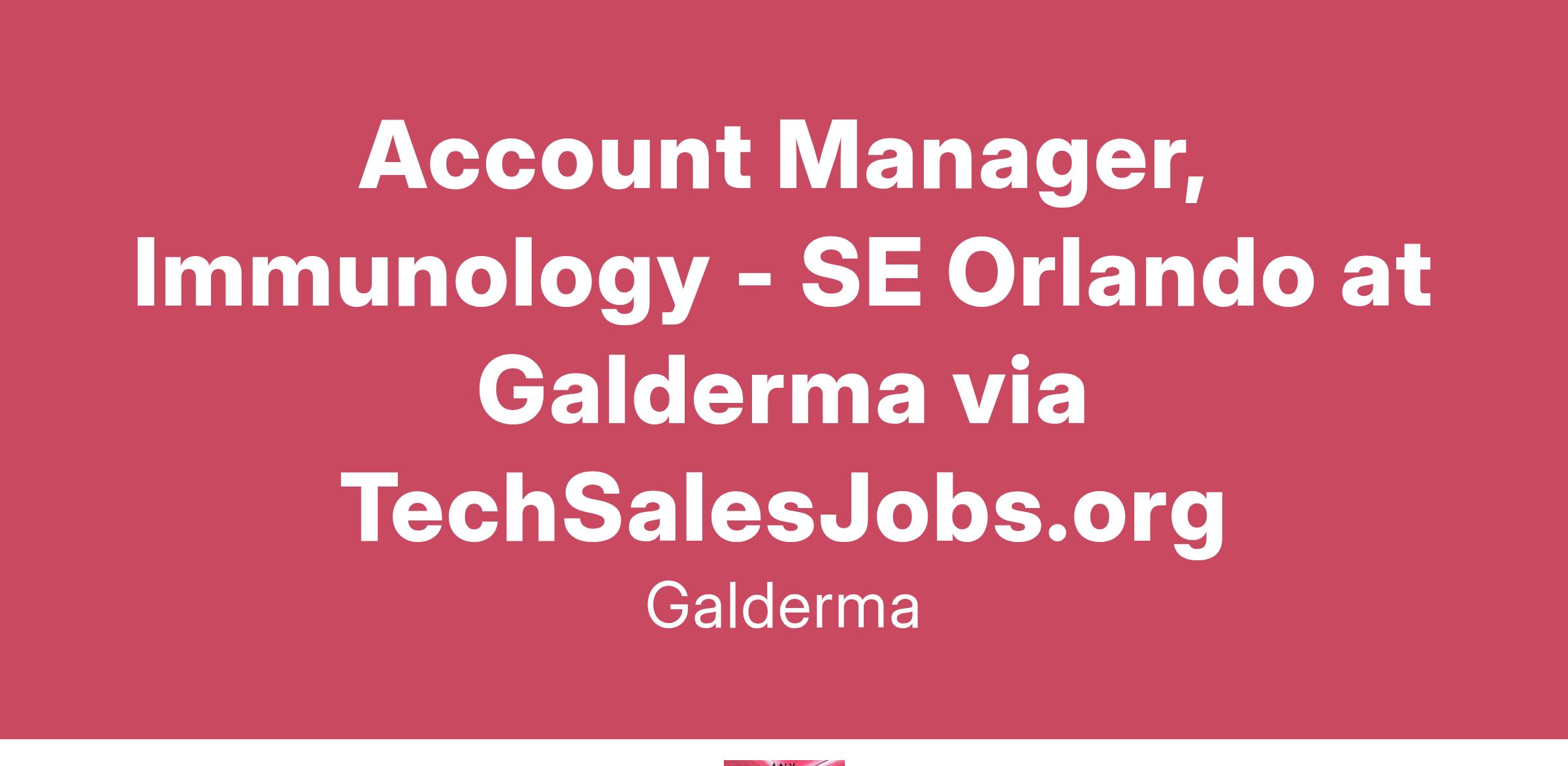 Job Title: Account Manager, Immunology - SE Orlando Location: Orlando, FL Territory covers: Orlando to Boca Raton Job Description: The Immunology Account Manager is responsible for achieving/exceeding Galderma portfolio sales and executing strategic objectives across high-valued (large, organized) customers within assigned customer segments (including but not limited to Dermatologists, Pharmacy, Integrated Health Networks, and professional organizations). The Account Manager will effectively promote Galderma\\\'s prescription dermatology biologic and consumer product portfolio, as assigned, requiring advanced skills in clinical, operational, and financial commercial selling.