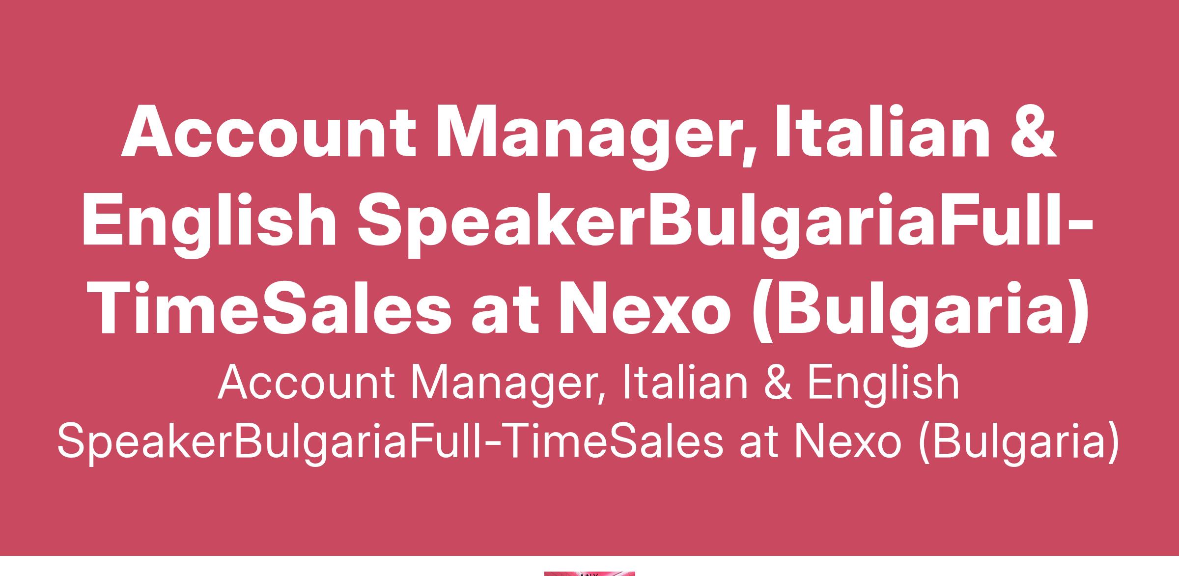 Account Manager, Italian & English SpeakerBulgariaFull-TimeSales at Nexo (Bulgaria)