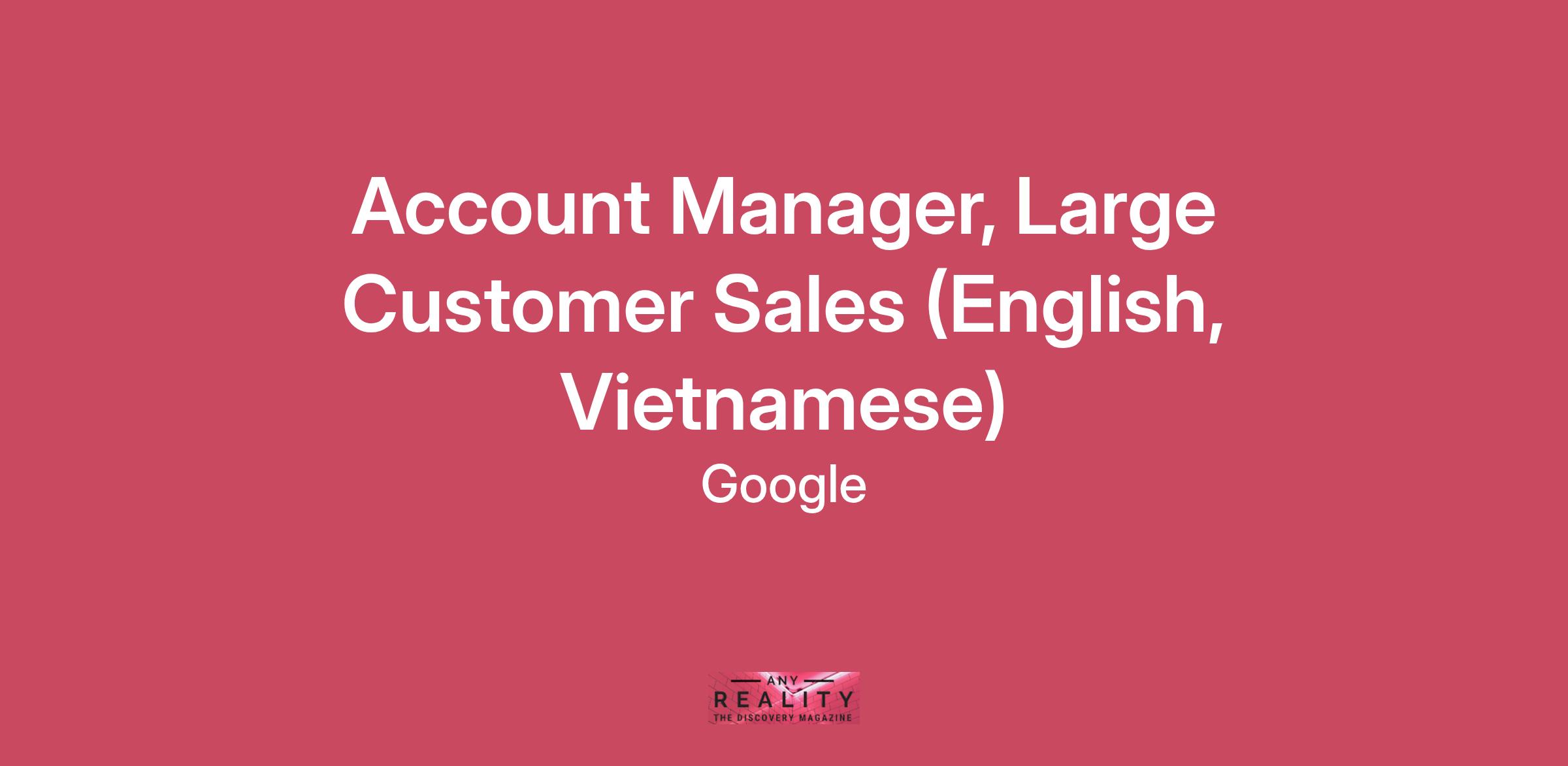As an Account Manager on the Large Customer Sales team, you will be the product expert who brings Google solutions to solve customer business and marketing challenges. You will cultivate consultative relationships and deliver leading perspectives to customers in Vietnam. You will work with internal and external stakeholders demonstrating the project management capabilities and coordinate implementation, execution and troubleshooting of Google solutions across multiple stakeholders. In this role, you will partner with advertisers in the Retail, E-commerce, Gaming and Telco industries, advising on Google's broad range of products across search, video and mobile to help them connect with their audiences.Our Large Customer Sales teams partner closely with many of the world’s biggest advertisers and agencies to develop digital solutions that build businesses and brands. We enjoy a bird’s eye view on the massive transformation occurring as advertising shifts to mobile and online platforms. We're uniquely situated to help shape how companies grow their businesses in the digital age. We advise clients on Google's broad range of products across search, video and mobile to help them connect instantly and seamlessly with their audiences.Responsibilities