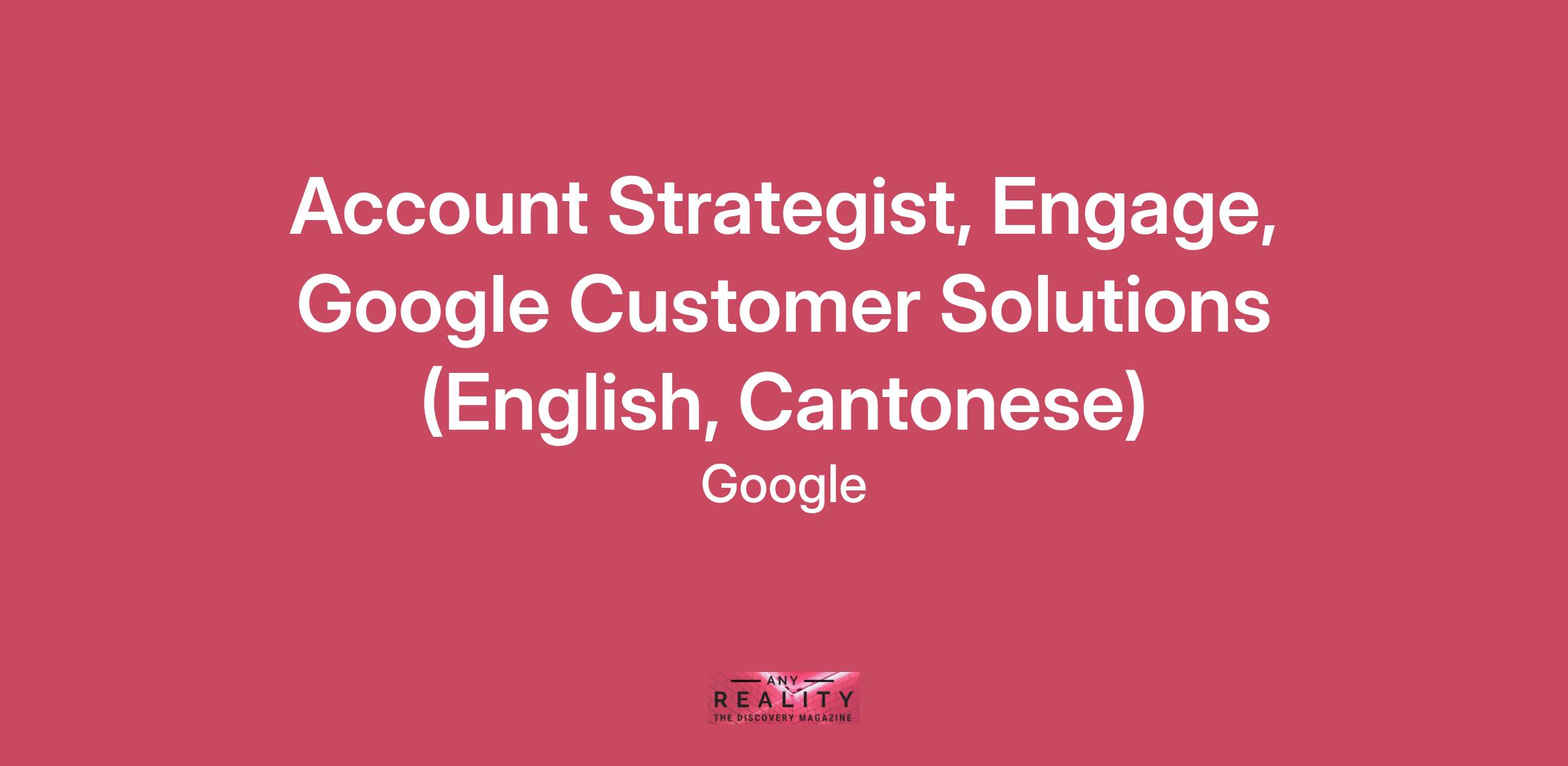 As an Account Strategist, you will provide quality client service, research and market analysis. You will anticipate decisions, uncover the business needs of Google's key clients and understand how our range of product offerings can grow their business. You will set the direction and the strategy for how their advertising can reach thousands of users. You will set a strategy for how their products and services can reach users. You will work as part of a team and use your creativity to grow and transform the business.Google Customer Solutions (GCS) sales teams are trusted advisors and competitive sellers who maintain a relentless focus on customer success by bringing the best Google has to offer to small- and medium-sized businesses (SMBs), which are the backbone of our communities. As a member of our team, you’ll have the opportunity to work with company owners and make a real difference in their businesses by helping them grow. Together, we help shape the future of innovation for customers, partners, and sellers...and we have fun doing it.Responsibilities