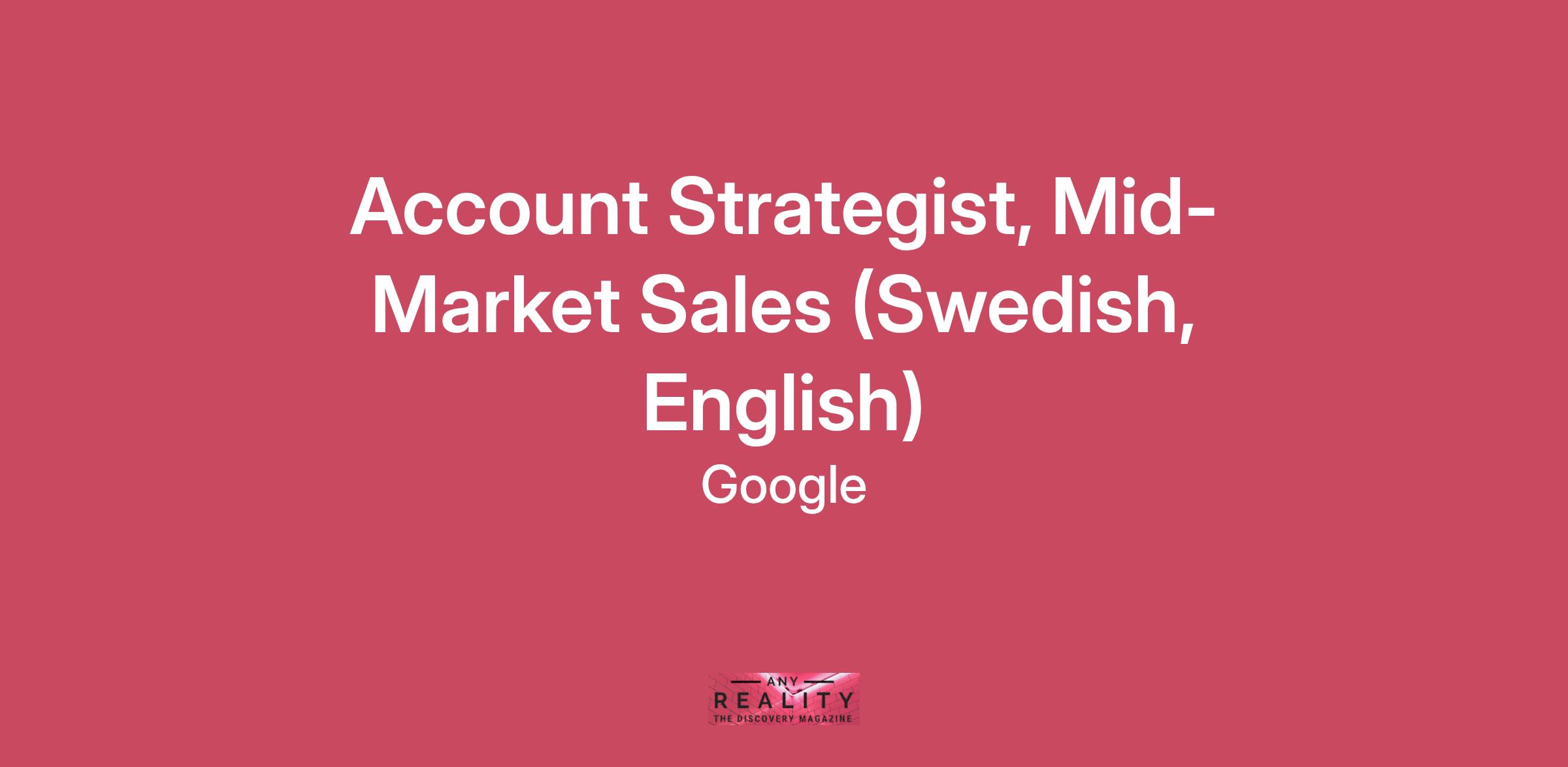 Mid-Market Sales (MMS) Account Strategists are sellers who serve as advocates of Google. Using an understanding of clients’ business goals, Account Strategists improve campaign performance, drive thoughtful Google product adoption, and build short- and medium-term strategies to meet business and marketing objectives.