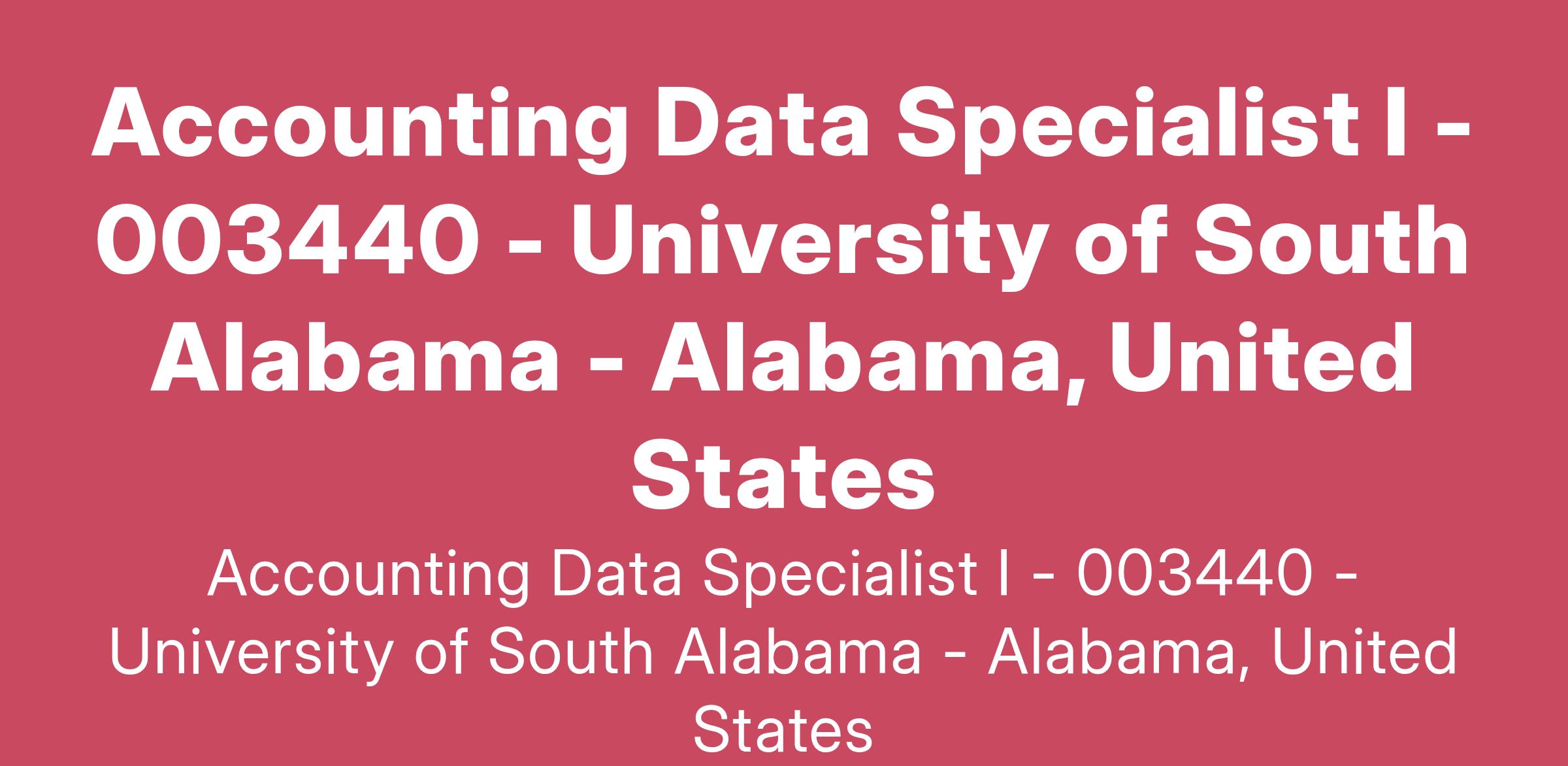 The University of South Alabama’s College of Education and Professional Studies-Admin is seeking to hire an Accounting Data Specialist I. Interested candidates should apply to be considered.