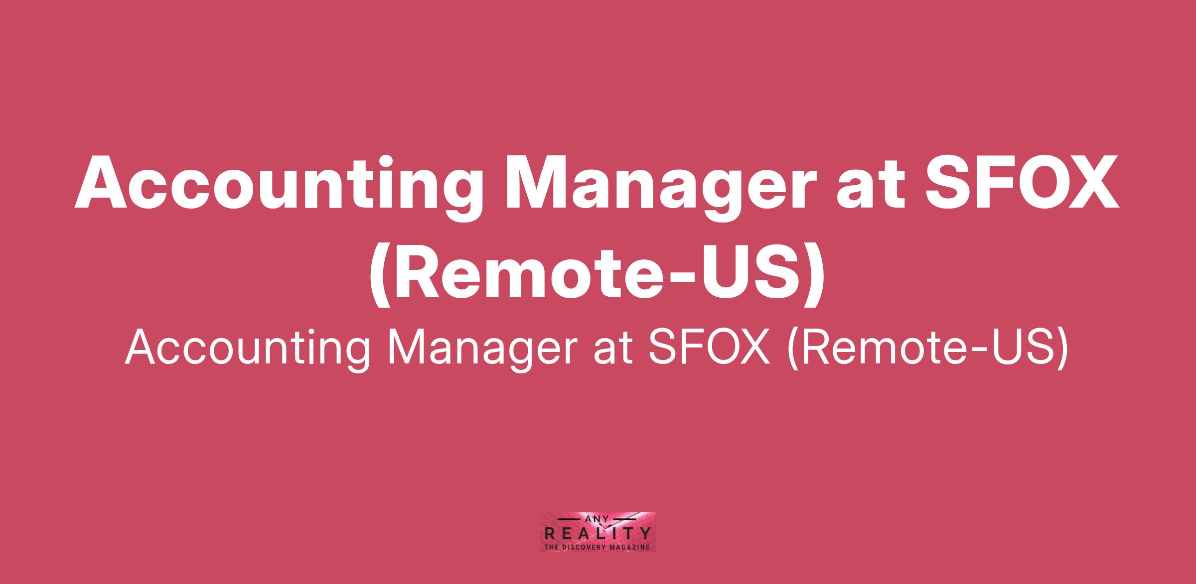 Accounting Manager at SFOX (Remote-US)