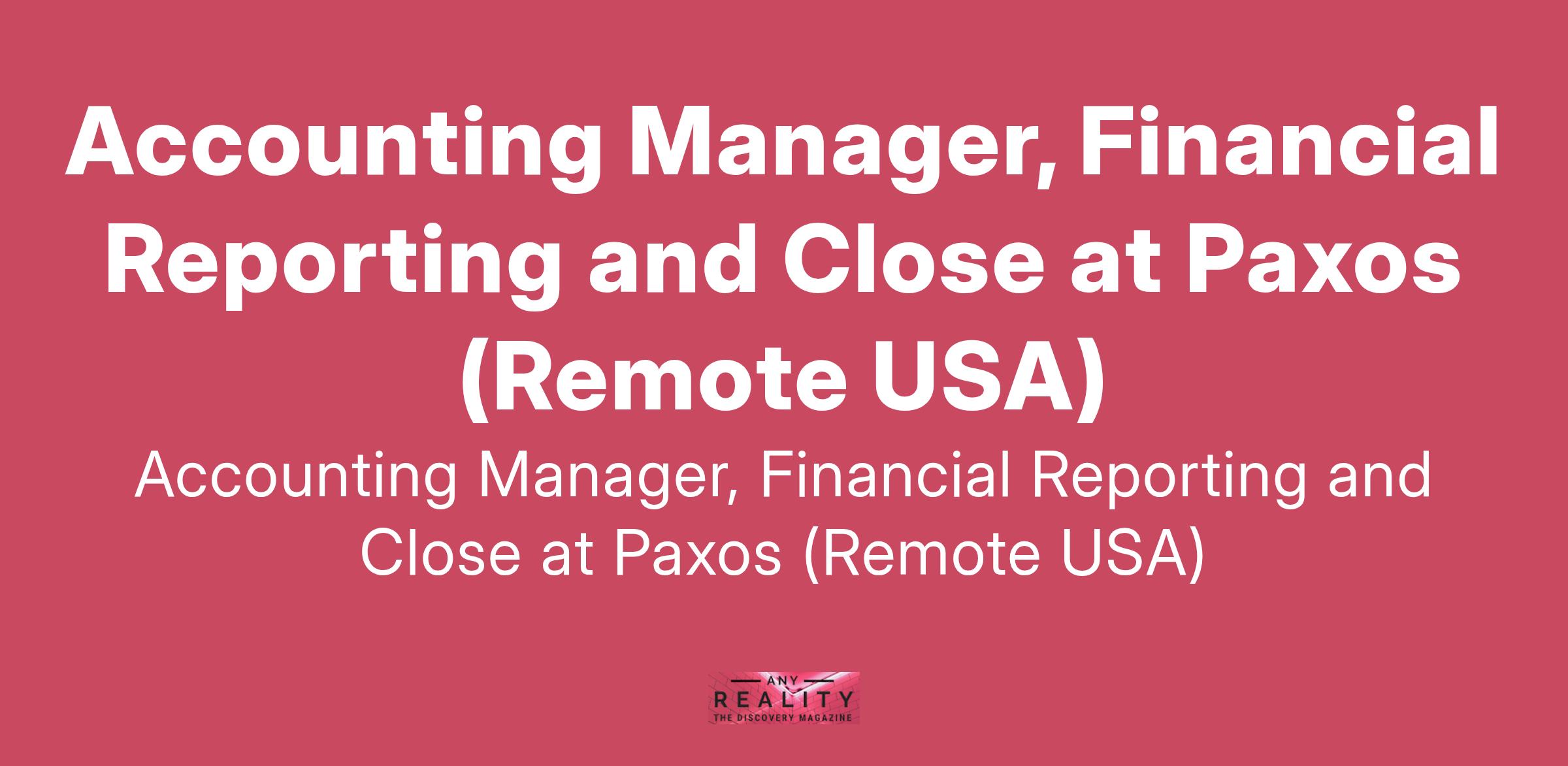 Accounting Manager, Financial Reporting and Close at Paxos (Remote USA)