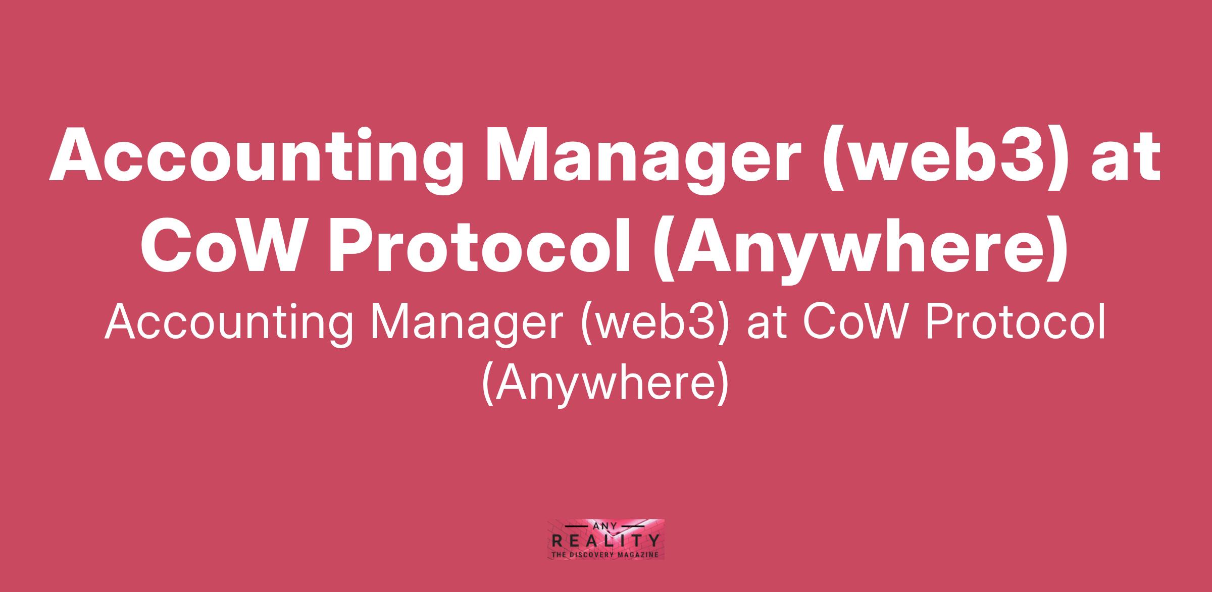 Accounting Manager (web3) at CoW Protocol (Anywhere)