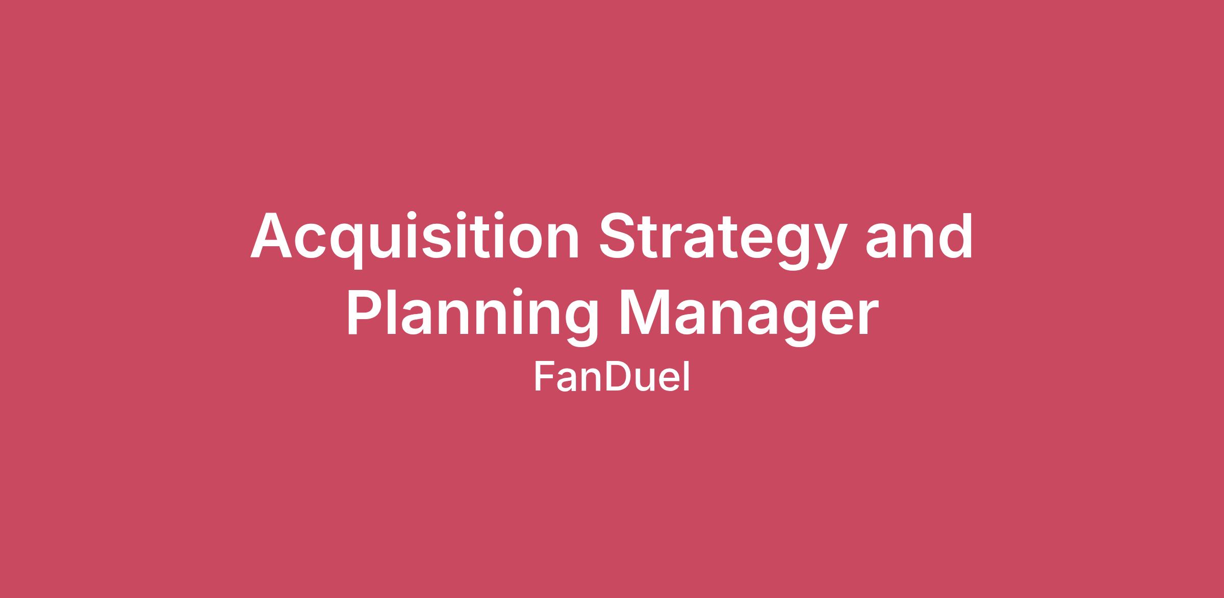 We’re looking for an Acquisition Strategy and Planning Manager that will support the day-to-day Casino Acquisition business function through best-in-class reporting, data analysis, and performance tracking. This is an energizing, highly visible role with the opportunity to make a material impact on the business outcome for FanDuel Group by delivering rapid, data-driven insights that guide where we focus and act.