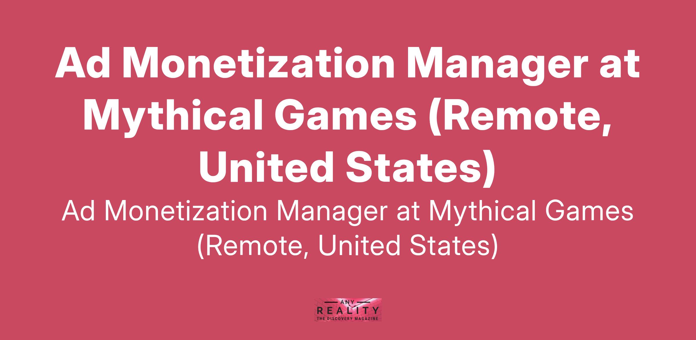Ad Monetization Manager at Mythical Games (Remote, United States)