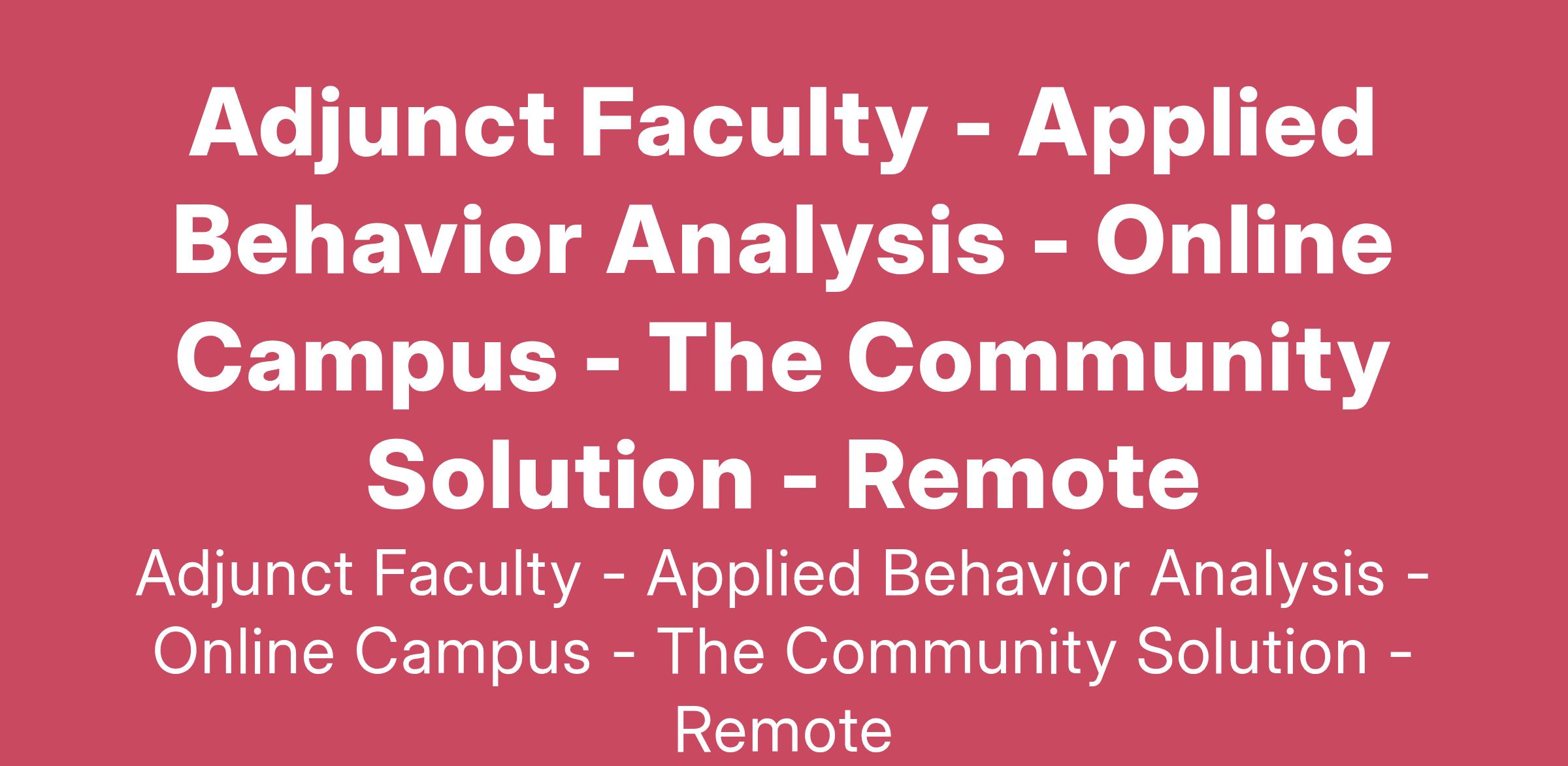 The Applied Behavior Analysis Department at The Chicago School is seeking several highly qualified adjunct instructors to join our diverse faculty at our Online Campus to teach in our Ph.D., M.S., and Graduate Certificate in Applied Behavior Analysis programs.