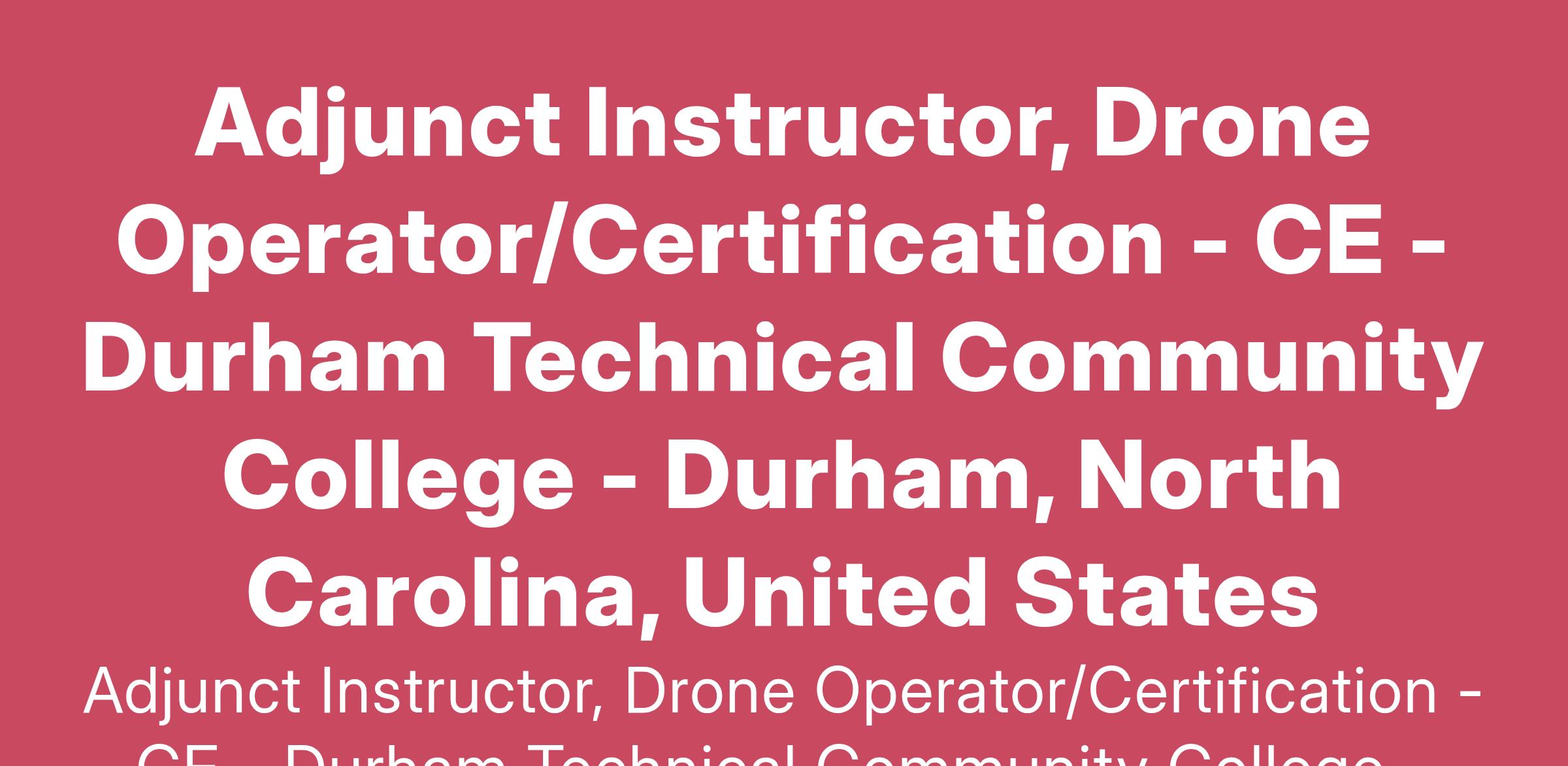 Do Great Things! Durham Technical Community College is hiring a Drone Adjunct Instructor in the Engineering Department. The Adjunct Instructor is responsible for course preparation, delivery, attendance and grading. The Instructor will work closely with his or her Discipline Chair on matters related to and for the benefit of the Engineering Department and its students. More specifically, and consistent with the terms and conditions of appointment as stipulated in the contract of employment.