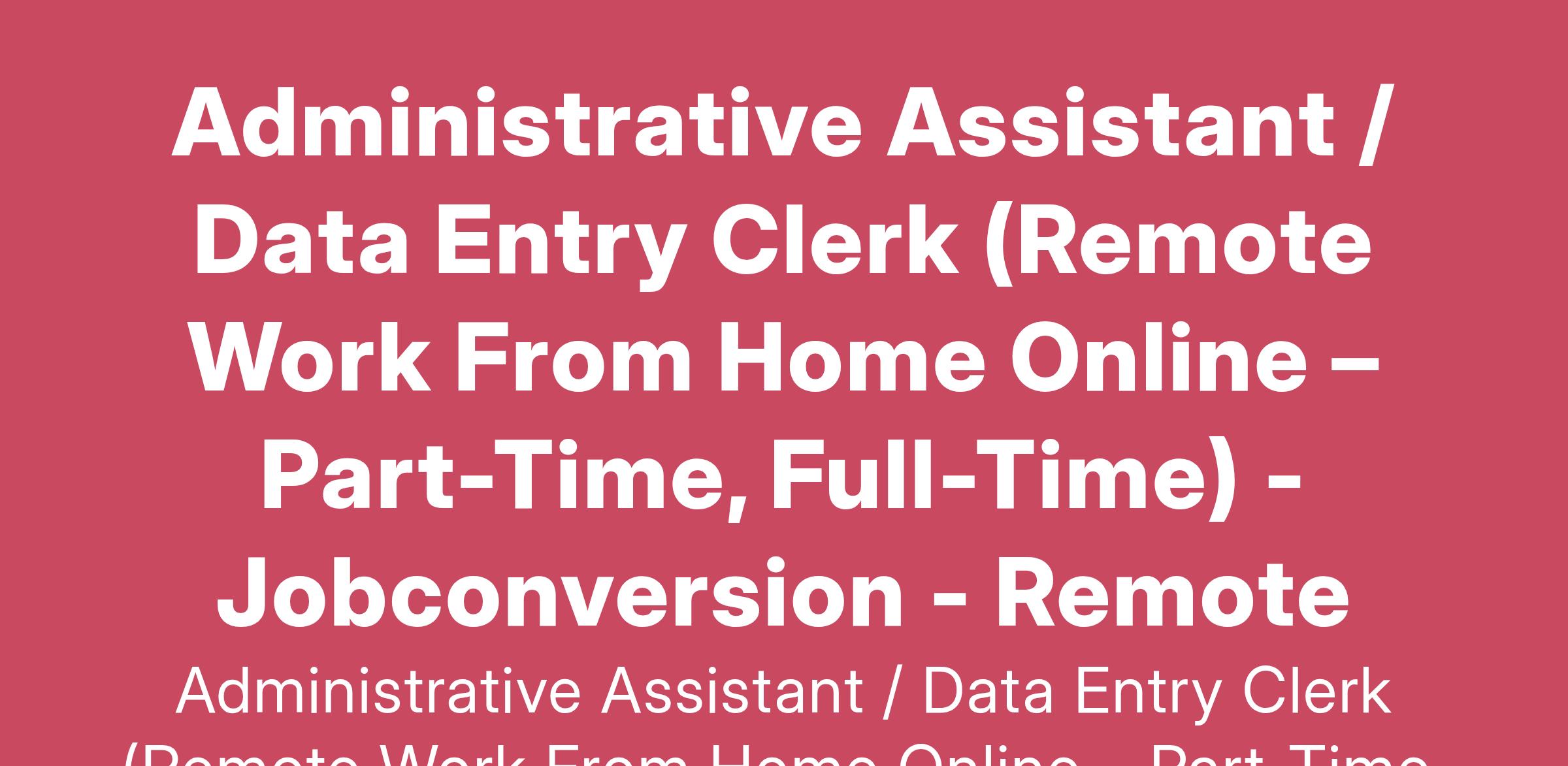 Administrative Assistant / Data Entry Clerk (Remote Work From Home Online – Part-Time, Full-Time) - Jobconversion - Remote