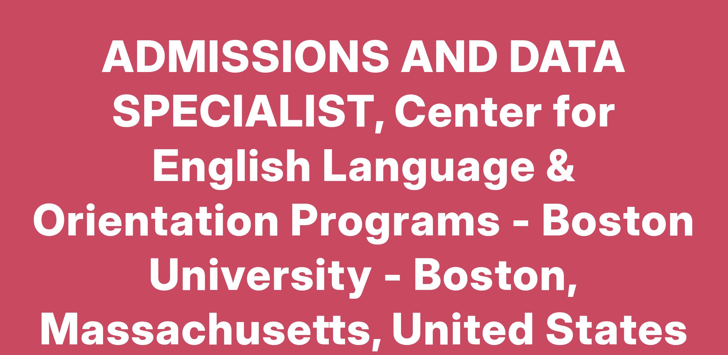 The Admissions and Data Specialist enhances CELOP's ability to efficiently enroll students with a high level of customer service and make informed decisions affecting admissions based upon analysis of admissions data. Reporting to the Admissions Manager, the Admissions Specialist is an expert with CELOP Admissions systems and tools and pursues opportunities to improve operations that facilitate student enrollment. The Admissions and Data Specialist is also a key collaborator with CELOP staff focused on growing the business and other Boston University Schools and Colleges that work with CELOP on delivering programs.