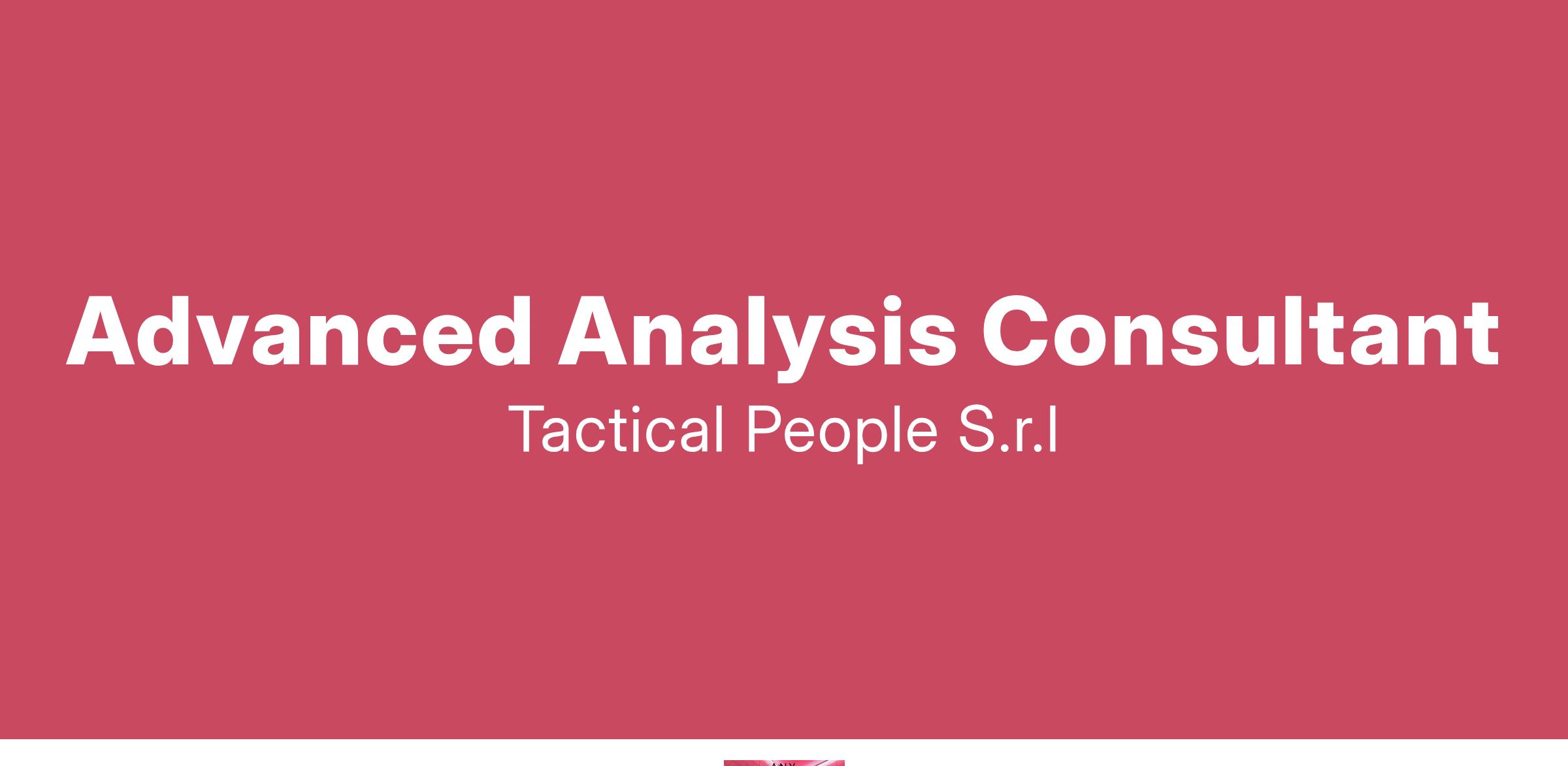 Unisciti a TACTICAL PEOPLE: Innovazione, Persone e Crescita nel Cuore della Digital Transformation Da oltre 20 anni, TACTICAL PEOPLE si posiziona come leader nel mercato ICT, guidando con passione e competenza i nostri clienti di medie e grandi dimensioni attraverso il dinamico percorso della digital transformation. La nostra mission è chiara: non solo abbracciare il cambiamento tecnologico, ma guidarlo, creando soluzioni all'avanguardia che plasmino il futuro digitale. In TACTICAL PEOPLE, crediamo fortemente nel mettere le persone al centro di ogni nostra iniziativa. Le persone sono il cuore pulsante della nostra azienda; il loro benessere, la loro crescita e il loro sviluppo sono la nostra priorità. Ci impegniamo a condividere le strategie aziendali con trasparenza e a fornire formazione e supporto a ogni livello, garantendo che ogni membro del team sia equipaggiato per eccellere e innovare. Stiamo cercando individui che condividano la nostra visione, che siano guidati dalla passione per la tecnologia e che desiderino essere protagonisti nella costruzione di un futuro digitale più luminoso. Se sei pronto a far parte di una squadra che valorizza il talento, incoraggia la crescita personale e professionale e lavora in prima linea nel settore della digital transformation, TACTICAL PEOPLE è il posto giusto per te. Posizione Aperta: Advanced Analysis Consultant Sede: Ibrido Bergamo - 2/3 giorni a settimana in smart working. Descrizione del ruolo: Il candidato ideale deve conoscere gli strumenti di project management e metodologie Agile. Cosa offriamo: Inserimento immediato in una Tech Community giovane e dinamica. TACTICAL LEARNING HUB, con corsi di aggiornamento e formazione. Il presente annuncio è rivolto ad entrambi i sessi, ai sensi delle leggi 903/77 e 125/91, e a persone di tutte le età e tutte le nazionalità, ai sensi dei decreti legislativi 215/03 e 216/03. I curricula dovranno pervenire completi di dicitura che autorizza il trattamento dei propri dati: “Si autorizza al trattamento dei dati personali ai sensi del D. Lgs. 196/2003.