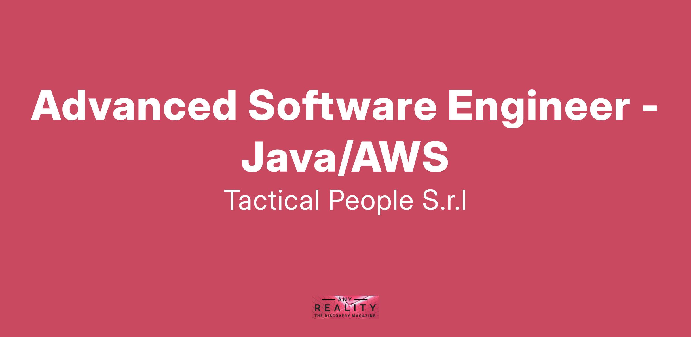 Unisciti a TACTICAL PEOPLE: Innovazione, Persone e Crescita nel Cuore della Digital Transformation Da oltre 20 anni, TACTICAL PEOPLE si posiziona come leader nel mercato ICT, guidando con passione e competenza i nostri clienti di medie e grandi dimensioni attraverso il dinamico percorso della digital transformation. La nostra mission è chiara: non solo abbracciare il cambiamento tecnologico, ma guidarlo, creando soluzioni all'avanguardia che plasmino il futuro digitale. In TACTICAL PEOPLE, crediamo fortemente nel mettere le persone al centro di ogni nostra iniziativa. Le persone sono il cuore pulsante della nostra azienda; il loro benessere, la loro crescita e il loro sviluppo sono la nostra priorità. Ci impegniamo a condividere le strategie aziendali con trasparenza e a fornire formazione e supporto a ogni livello, garantendo che ogni membro del team sia equipaggiato per eccellere e innovare. Stiamo cercando individui che condividano la nostra visione, che siano guidati dalla passione per la tecnologia e che desiderino essere protagonisti nella costruzione di un futuro digitale più luminoso. Se sei pronto a far parte di una squadra che valorizza il talento, incoraggia la crescita personale e professionale e lavora in prima linea nel settore della digital transformation, TACTICAL PEOPLE è il posto giusto per te. Posizione Aperta: Advanced Software Engineer - Java/AWS Sede: Full remote Descrizione del Ruolo: Il candidato ideale possiede una conoscenza approfondita delle ultime release di Java e delle nuove feature introdotte nelle versioni più recenti, tra cui l’uso di Stream API. Sarà inoltre coinvolto nello sviluppo di soluzioni scalabili su AWS e nell’implementazione di containerizzazione con Docker. Cosa offriamo: Inserimento immediato in una Tech Community giovane e dinamica. TACTICAL LEARNING HUB, con corsi di aggiornamento e formazione. Il presente annuncio è rivolto ad entrambi i sessi, ai sensi delle leggi 903/77 e 125/91, e a persone di tutte le età e tutte le nazionalità, ai sensi dei decreti legislativi 215/03 e 216/03. I curricula dovranno pervenire completi di dicitura che autorizza il trattamento dei propri dati: “Si autorizza al trattamento dei dati personali ai sensi del D. Lgs. 196/2003.