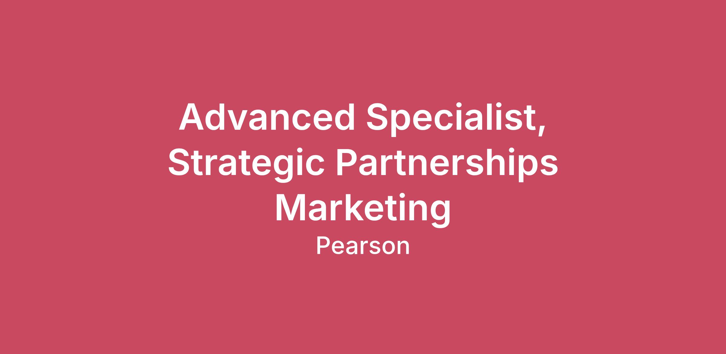 Job title: Advanced Specialist, Strategic Partnerships MarketingDescription: A senior strategic marketer shaping U.S. partnership messaging, ABM strategy, and cross‑functional go‑to‑market alignment for higher‑education and public‑sector audiences. Typically aligned in the market to roles such as Strategic Marketing Manager, Senior Marketing Manager (B2B/Enterprise), Partner Marketing Manager or ABM Manager.Location: US Remote, with occasional travel The RoleWe’re looking for an experienced Marketing Manager to serve as a individual contributor supporting Pearson’s most critical higher education, institutional, and public-sector partnership efforts.This role is designed for a marketer who brings deep expertise, sound judgment, and the ability to operate independently on complex initiatives. You’ll help shift conversations in the U.S. market from product-level engagement to institution-wide and system-level partnerships, contributing strategic insight, messaging, and campaign guidance that supports long-term growth.You will serve as a key U.S. strategic marketing expert who co-creates ABM programs for institutional leaders with Global counterparts, using U.S. market insight to shape strategy while also scaling reusable frameworks and learnings globally. You’ll drive alignment and execution through collaboration with Sales, Product and the global marketing teams.Key ResponsibilitiesContribute to the development and execution of U.S.-focused strategic marketing initiatives that position Pearson as a trusted partner to university leadership, systems, and government-adjacent stakeholdersShape and evolve U.S. messaging and positioning for Pearson’s pan-portfolio higher education offering, tailored to institutional and public-sector needsApply and adapt global thought leadership into market-relevant narratives, content, and campaigns aligned to U.S. policy, funding, and institutional priorities.Develop strategic messaging frameworks, toolkits, and guidance that support geo and segment marketing teams in effective local execution Support strategic partnership pursuits, proposals, and large-scale opportunities by aligning marketing inputs to sales and business development needs Partner with the Events team to inform U.S. event strategy and content for senior institutional and government audiences Collaborate cross-functionally with U.S. sales, product marketing, and global stakeholders to ensure alignment and clarityTrack and assess marketing effectiveness across awareness, engagement, and commercial influence, contributing insights to inform future strategyProvide informal mentorship and guidance to specialists and peers through subject-matter expertise and best-practice sharingWhat We’re Looking ForA seasoned marketer with experience engaging senior stakeholders in higher education, B2B, or public-sector environmentsDemonstrated strength in messaging, positioning, and strategic narrative development for complex, multi-solution offeringsAbility to work independently on high-impact initiatives, exercising judgment and influencing outcomes without formal authorityStrong collaborator who navigates matrixed environments effectively across global and U.S. teamsComfortable balancing strategic thinking with hands-on executionPassion for education and the role partnerships play in driving systemic impactCompensation at Pearson is influenced by a wide array of factors including but not limited to skill set, level of experience, and specific location. As required by the California, Colorado, Hawaii, Maryland, New York State, New York City, Washington State, and Washington DC laws, the pay range for this position is as follows: The minimum full-time salary range is between $90,000 - $110,000 per annum.Applications will be accepted through Friday 10th February. This window may be extended depending on business needs. This position is eligible to participate in an annual incentive program, and information on benefits offered is here.