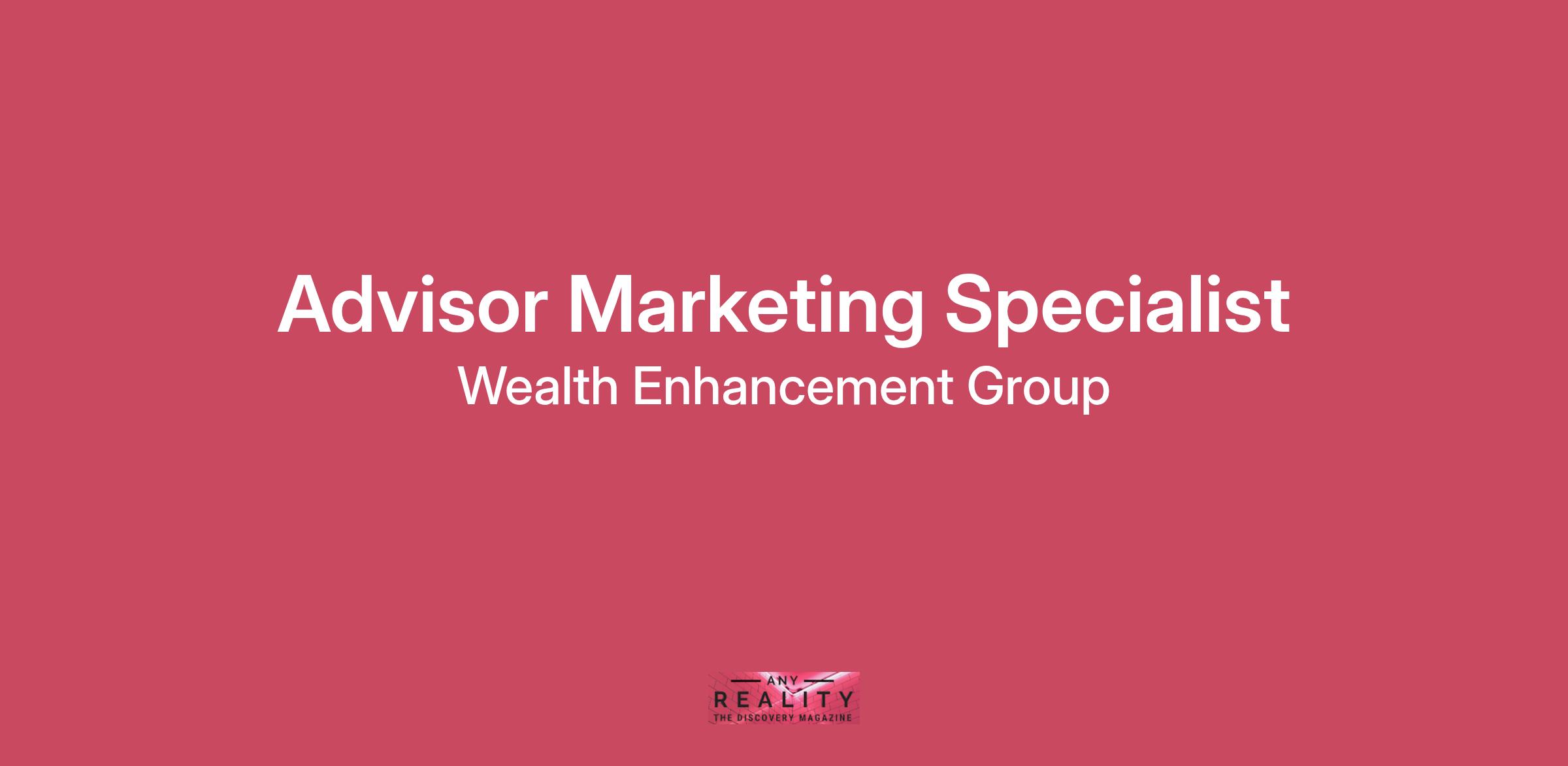 About Wealth EnhancementWealth Enhancement is an independent wealth management firm with an endless passion for enriching the lives of our clients. We continually seek to perfect our craft of personalized financial planning with our team-based Roundtable and UniFi processes that go far beyond the standard approach. We proudly provide unique financial plans and investment management services to over 80,000 households from our over 140 offices - and growing - nationwide.Since 1997, Wealth Enhancement has tirelessly raised the standard of wealth management with specialized knowledge and more attentive service that helps every client craft their future. For more information, please visit www.wealthenhancement.com.We have an exciting opportunity for an Advisor Marketing Specialist! The Advisor Marketing Specialist is a highly collaborative partner to a portfolio of advisor teams. This role is deeply embedded in each team's business goals, practice and voice and is responsible for creating, executing, and optimizing marketing strategies that drive measurable growth. As the closest marketing connection to their assigned advisor teams, the Specialist brings creativity, insight, and proactive guidance to life across email, social, events, and campaigns. This position is ideal for a relationship-first, results-oriented marketer who thrives in a fast-paced environment and is excited by the opportunity to help shape team-level marketing execution and client experience across Wealth Enhancement. This is a fully remote position.In the spirit of pay transparency, we are excited to share the base salary range for this position is $68,000.00 to $80,000.00, exclusive of bonuses and benefits. This role is also eligible for an annual corporate bonus. We encourage you to apply and provide us with your compensation expectations when you do. We’re big on open conversations, so, let’s have one.Primary Job FunctionsStrategic Support for Advisor Teams Act as the day-to-day marketing lead for 8 advisor teams, becoming an expert in each team’s goals, voice, services, and growth opportunities. Conduct proactive campaign planning sessions with advisor teams to uncover needs, provide recommendations, and ensure marketing initiatives align to team-level business goals. Partner closely with Advisor Marketing Consultants to ensure each team’s plan ladders up to regional growth priorities. Key aspect of role is supporting a handful of teams executing on their marketing goals and initiatives with a big focus on event coordination. Align advisor team marketing plan with corporate marketing offerings and adoption of key growth drivers and initiatives using our Advisor Marketing Platform for events, email and social strategies from our content library and advisor crafted content Navigate Salesforce: pull reports, analyze dashboards, present client data, create campaigns and report out on results and final budgets (we can teach you!) Campaign Execution & Innovation Lead campaign planning and execution using tools like FMG Suite, Canva, Wistia, Wrike, and Salesforce. Coordinate collateral development, content customization, email/social/web campaigns, event support, and vendor communications as needed. Collaborate with the Creative, Brand, Web, and Compliance teams to ensure timely execution and approval of marketing assets. Track results and share post-campaign insights and optimizations with teams and marketing leaders. Leverage AI tools to increase content speed, surface new ideas, and streamline recurring marketing processes. Communication & Collaboration Foster strong relationships with financial advisors, the advisor marketing team and identifying and highlighting success stories and best practices within the advisor community. Help to document and create processes around successful new initiatives. Serve as a key central knowledge hub for each assigned team’s marketing strategy and execution. Keep internal stakeholders (e.g., Advisor Marketing Consultant, Advisor Marketing leaders) informed of key campaigns, blockers, and advisor feedback. Ensure work is visible and documented, allowing consultant team members to stay out of day-to-day execution while maintaining confidence in outcomes. Regularly educate and train advisors and their staff on your marketing recommendations, marketing collateral, and tools available to support all areas of their client and prospect lifecycle. Research and stay informed on ideas within and outside our industry to make recommendations and bring new ideas to your advisor teams. Take ownership of key advisor enablement projects as needed to help continually enhance our offerings and capabilities. Organic Growth team collaboration Participate in team-wide meetings, creative brainstorms and campaign showcases. Contribute to the development of new tools, templates, or campaign frameworks. Identify opportunities to scale successful ideas across advisor teams. Serve as a collaborative partner within the team, pitching in on things that wouldn’t normally be on your to-do list as needed. Education/Skill RequirementsBA/BS degree in Marketing, Communications or related field. Minimum of 3 years of marketing or sales enablement experience required. Financial services marketing experience is beneficial but not required. Strong project management, communication, and relationship-building skills. Good working knowledge of Word, Excel, Outlook, and PowerPoint. Able to function in Wistia, Wrike, Canva and FMG Suite a plus! Technical aptitude: Ability to learn new applications, technologies and AI quickly. Proficiency in working with CRM systems required, Salesforce a plus. Ability to manage multiple team relationships and priorities concurrently. Excellent writing, visual storytelling, and content development skills. Travel 2-7 times per year to support team initiatives and events. WEG hires employees and makes decisions about their salary qualifications based on factors such as: the role to be p