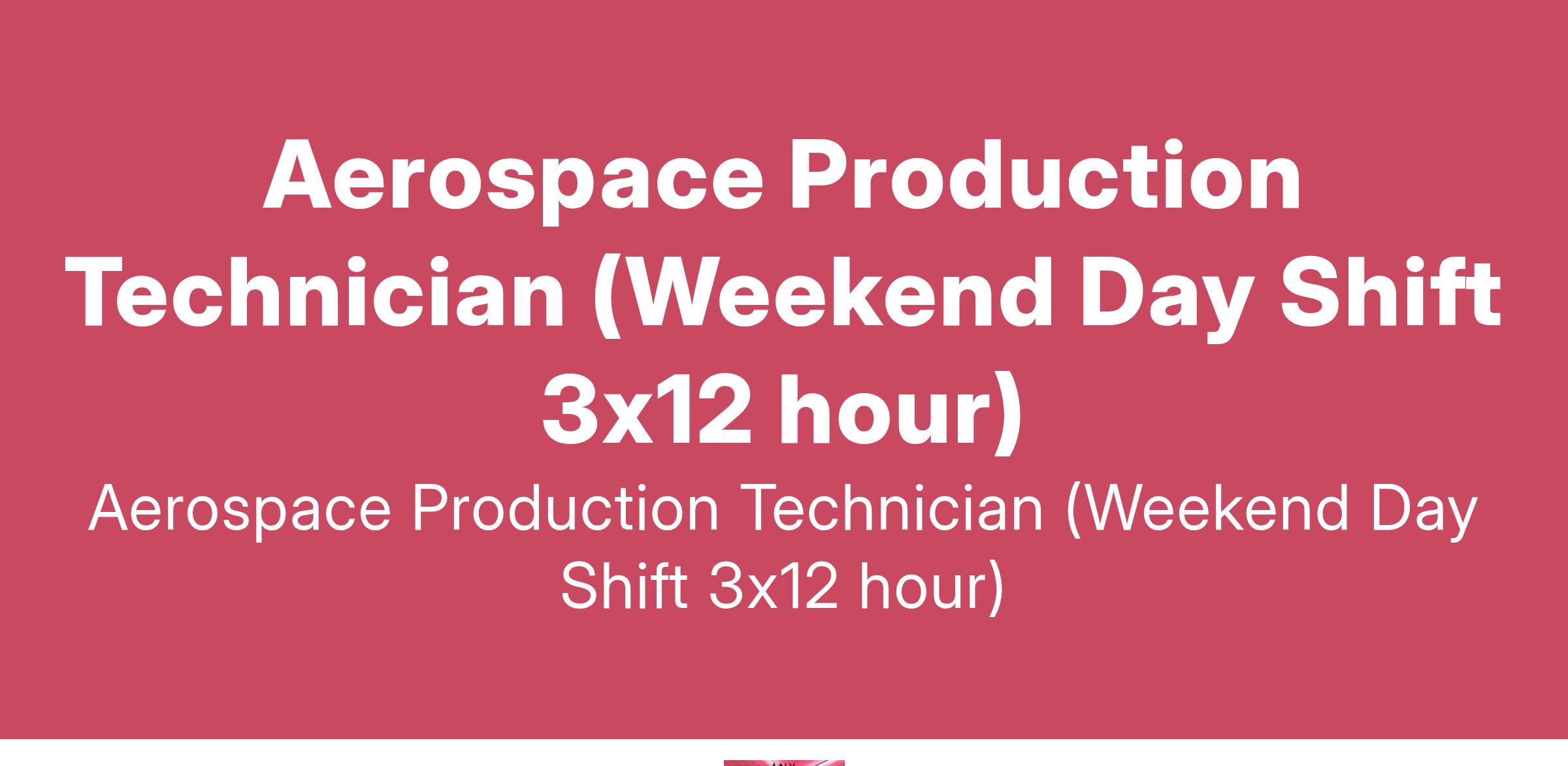 Aerospace Production Technician (Weekend Day Shift 3x12 hour)