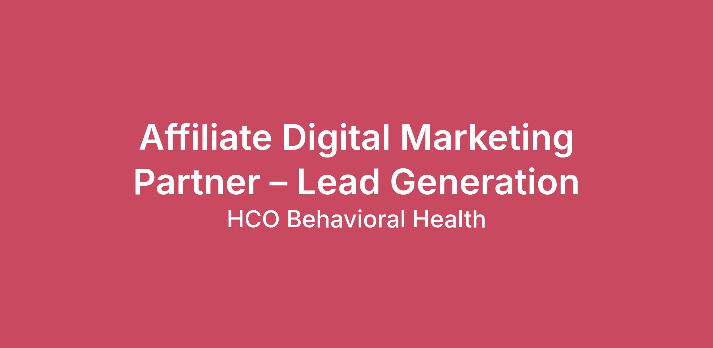 We are seeking an experienced Digital Marketing Partner or Affiliate Marketer who specializes in generating high-quality leads through digital channels such as Google Ads, social media marketing, SEO, and funnels. This opportunity is structured as a revenue-share affiliate partnership, meaning you will have the freedom to run and manage your own marketing campaigns while earning compensation based on the clients you help generate. This role is ideal for experienced marketers who are confident in their ability to generate leads and want to earn based on the results they produce. About Our Companies You will be generating leads for two growing healthcare organizations: HCO Behavioral Health ServicesAn established behavioral health organization providing counseling and mental health services. Elevate Healthcare GroupA modern telehealth platform focused on expanding access to mental health care nationwide. Our goal is to increase access to high-quality mental health services while expanding nationally through innovative digital growth strategies. How This Opportunity Works This role operates as an affiliate-style partnership. You will: • Develop and manage your own marketing campaigns• Generate qualified leads for counseling and telehealth services• Earn a revenue share for each converted client You will have the flexibility to use strategies such as: • Google Ads• Facebook / Instagram Ads• SEO• Funnels & landing pages• Email marketing• Influencer or affiliate campaigns• Organic social media growth Compensation Structure This opportunity operates on a revenue-share model based on converted clients generated from your campaigns. Marketers earn a percentage of revenue generated from the clients they bring in. Example earning potential: Typical Monthly Earnings:$2,500 – $8,000 Top Performer Potential:$10,000 – $20,000+ per month Your earnings increase as your campaigns scale and generate more converted clients. This is an independent affiliate-style opportunity. • Marketers are responsible for managing and funding their own campaigns• Compensation is tied directly to performance and client conversions• There is no cap on earnings for high performers Ideal Candidate We are looking for someone who: • Has experience generating leads through digital marketing• Understands paid advertising and conversion funnels• Is comfortable running and managing their own campaigns• Is entrepreneurial and results-driven• Wants unlimited earning potential based on performance Preferred Skills • Lead generation marketing• Google Ads• Facebook / Instagram Ads• SEO and organic traffic growth• Funnel building (GoHighLevel, ClickFunnels, etc.)• Conversion optimization• Marketing analyticsLocationHouston, Texas (Remote)DepartmentMarketingEmployment TypeContractorMinimum ExperienceExperiencedCompensation$2,500 - $8,000 per month