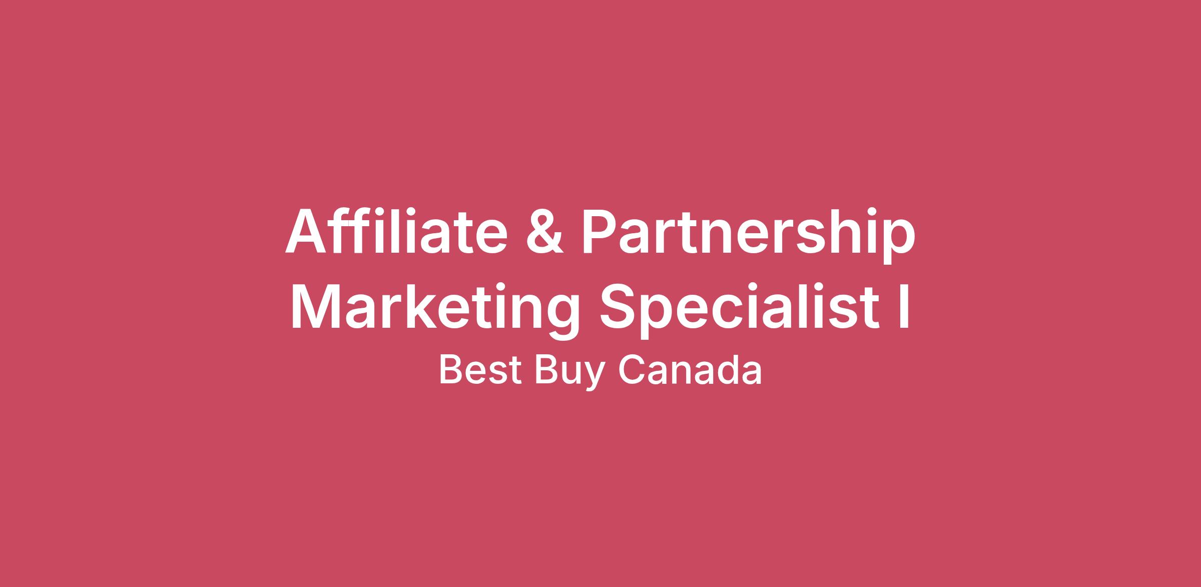 Affiliate & Partnership Marketing Specialist IAre you passionate about digital marketing and building strong partnerships in a results-driven and ever-changing environment?As an affiliate & partnership marketing specialist you will lead day-to-day affiliate operations, ensuring campaigns are accurately built, tracked, and optimized while maintaining brand and technical standards. You’ll troubleshoot tracking issues, verify partner payments, and manage key network activities such as commission updates and deep linking. You’ll also identify process improvements while supporting research on new affiliate partnership opportunities.In this role, the successful candidate is needed to be in the greater Vancouver, BC area, where we practice a remote first working model, leveraging in person interactions for strategic, collaborative, and social purposes.Grow your passion for digital marketing and join our team as an affiliate & partnership marketing specialist!What you’ll do:Lead day‑to‑day affiliate operations, managing workflows and promotional activities with affiliate partners.Build and launch affiliate network campaigns with accurate targeting, tracking, and timelines.Manage key network tasks including updating partner terms and commissions, deep linking, and reviewing transaction inquiries.Ensure all creative assets meet brand and technical standards, and optimize campaigns while flagging any performance issues.Troubleshoot tracking errors, resolve ad placement discrepancies, and verify the accuracy of affiliate partner payments.Identify and implement process improvements while supporting research on new affiliate partnership opportunities.What we’re looking for:1-2 years of experience in Digital Marketing, eCommerce, or related experienceProven ability to execute projects end-to-end, on time and within budget, under general directionProven ability to execute campaigns in a highly dynamic, collaborative, and matrixed environmentStrong analytical strengths, critical thinking, and problem-solving skillsAdvanced experience in ExcelStrong attention to detail, organizational and management abilitiesBackground/knowledge about Affiliate and Partnership MarketingExperience with the Impact Affiliate PlatformExperience with managing B2B relationshipsWhy you’ll love it here:Remote-first work environmentEmployee discounts on awesome tech from day oneFlexible health benefits and wellness programTFSA and RRSP programs100% matched company pension planTraining programs to build new and transferable skillsAbout Best BuyAs Canada's destination for the coolest tech, Best Buy offers one of the best work environments in the country! Our culture is one of inclusivity and belonging and provides employees an environment where they can bring their whole selves to work.We believe in a fair and inclusive hiring process. We encourage you to apply if you may not meet all the requirements.Join our amazing team!We are looking for people just like you.Annualized Compensation Range$57,000.00 - $62,000.00Starting pay offered will consider skills and experience. Your pay can grow as you build your career with us. Suite 102 - 425 West 6th Avenue, Vancouver, BC V5Y 1L3 This posting is for a vacancy.