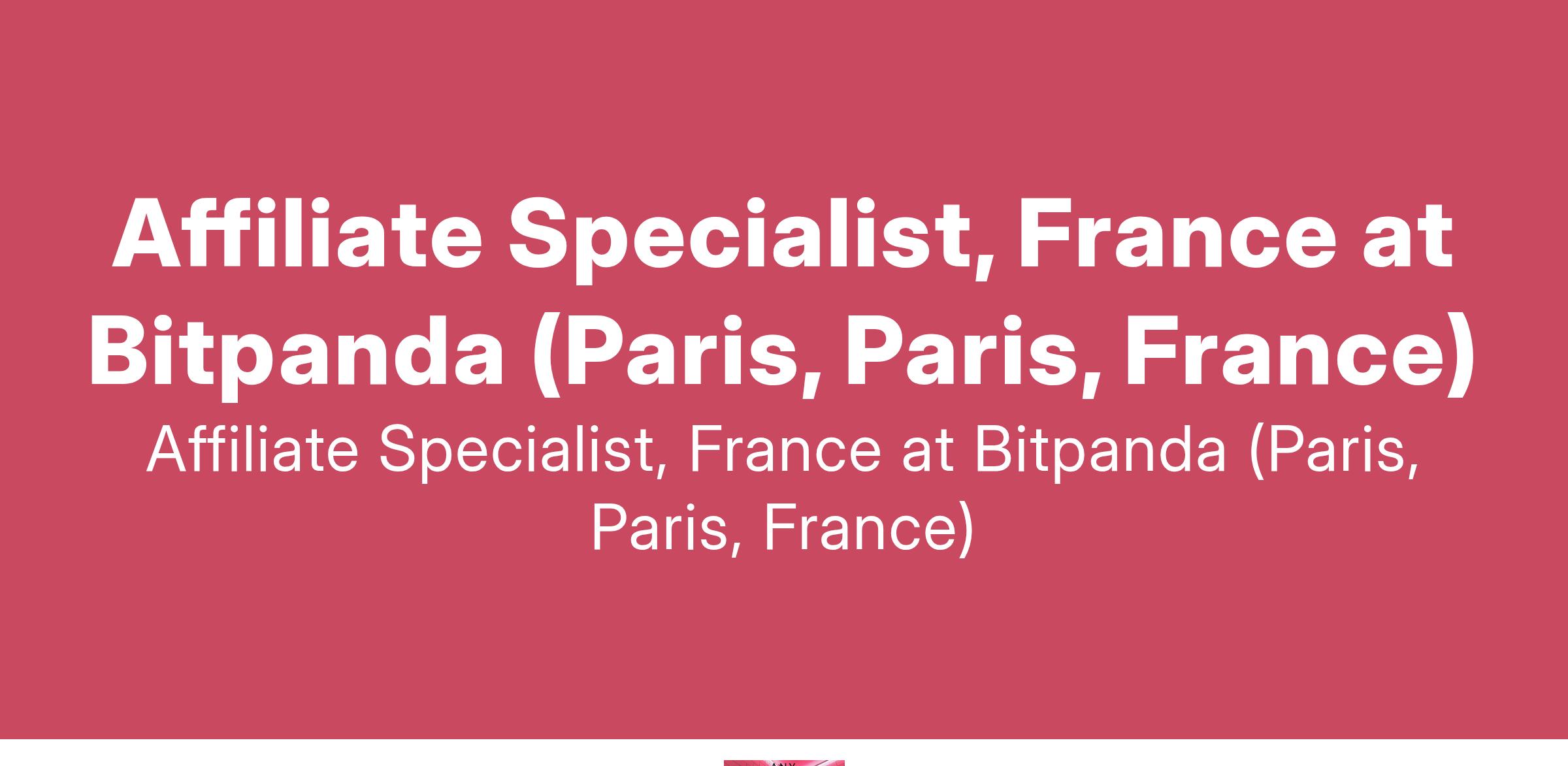 Affiliate Specialist, France at Bitpanda (Paris, Paris, France)