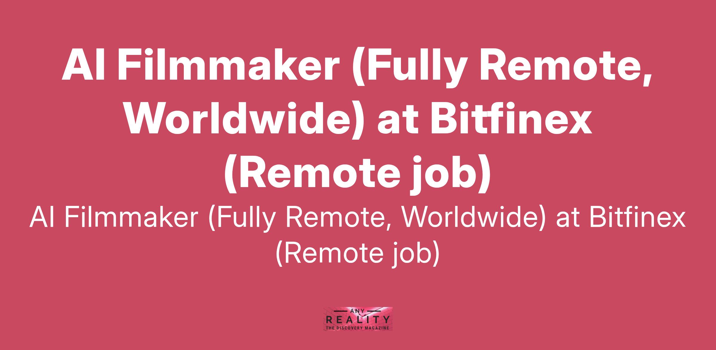 AI Filmmaker (Fully Remote, Worldwide) at Bitfinex (Remote job)