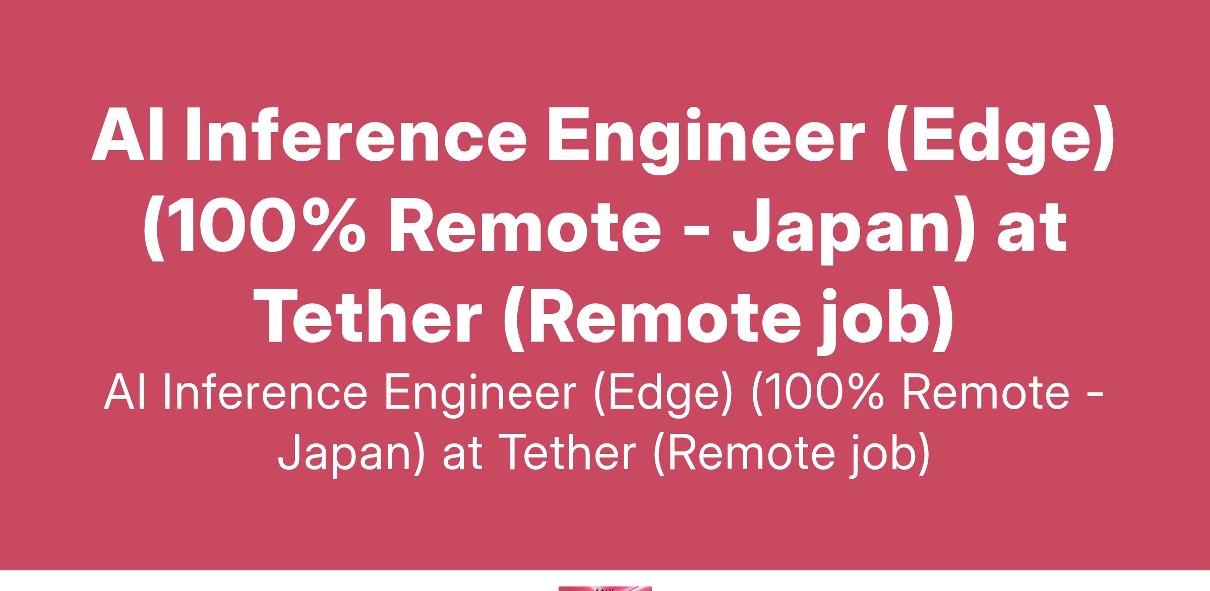 AI Inference Engineer (Edge) (100% Remote - Japan) at Tether (Remote job)