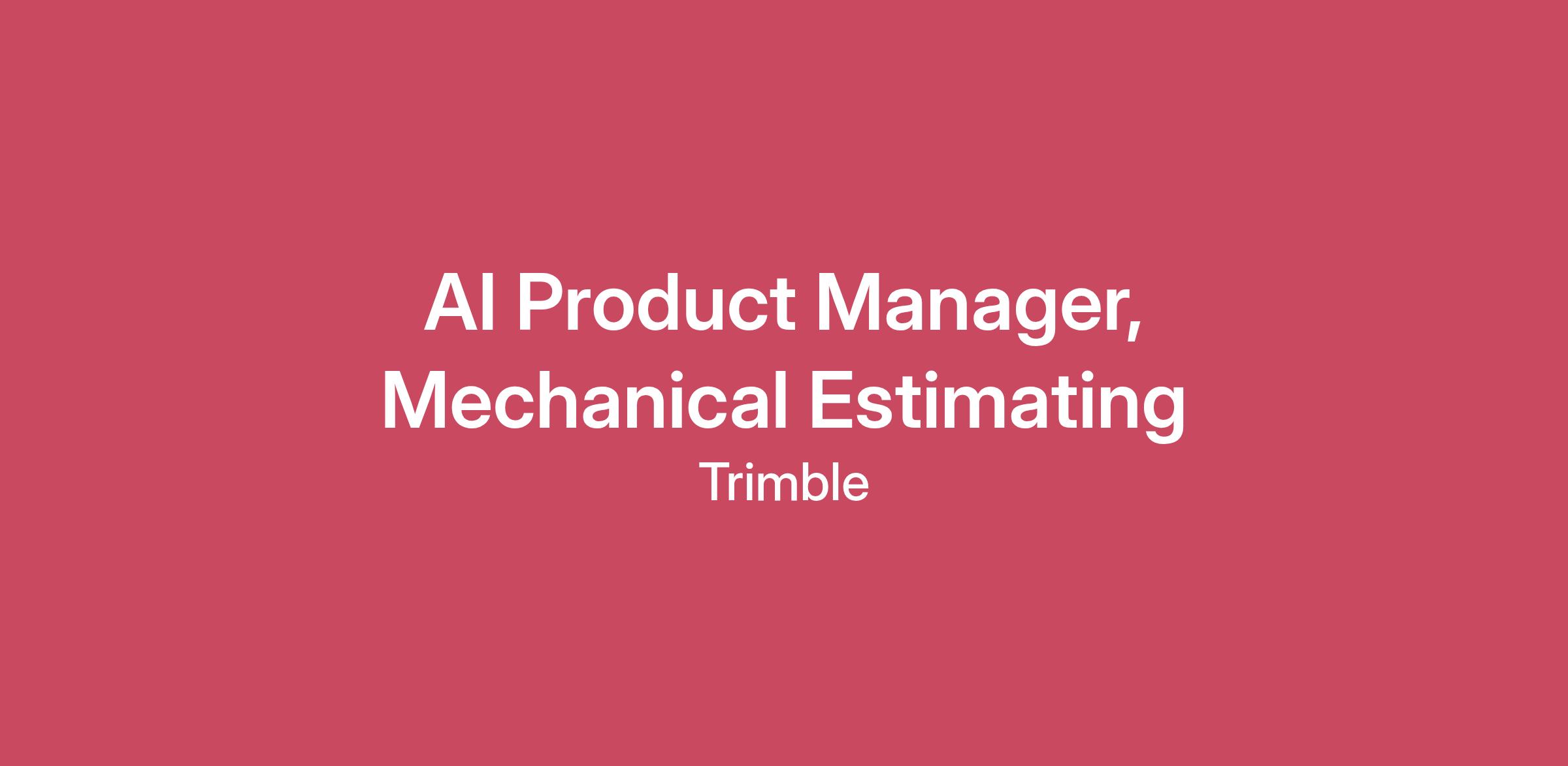 Product Manager, Mechanical Estimating - Strategic AI Integration Job Location: Westminster, CO or Portsmouth, NH, Knoxville, TN or Lake Oswego, OROur Department: Construction Management Solutions (CMS) Are you ready to leverage your creative capabilities and AI to solve the toughest challenges faced by contractors? What You Will DoThe products you'll be responsible for are the market-leading solutions serving the needs of North American Plumbing and Mechanical contractors, and are in different product life cycle stages. You will balance the demands of a product in the life extension stage with that of the introduction stage. This means you will need to be decisive, highly organized, and driven to deeply understand the industry and users. You are motivated to understand the challenges that plumbing and mechanical contractors face and are determined to leverage your creative capabilities and AI to solve them. You're experienced in working in an agile software development environment to improve and expand the product by means of frequent releases.You will develop and execute on a strategy that encompasses both Trimble products and external facing API’s, which enables customers and other software vendors to integrate product capabilities into their workflows. You'll achieve this in close collaboration with other product managers, customers, sales, support, and work with UI/UX designers to ensure a good, consistent customer experience.Strategic AI Integration: Implement cutting-edge AI technologies to revolutionize Trimble CMS, ensuring significant customer impact and revenue growth.Roadmap Leadership: Craft and steward a forward-looking product strategy and roadmap, aligning with Trimble’s overarching business goals.What Skills & Experience You Should Bring3–5 years of excelling against performance metrics in a Product role.AI Product Expertise and a passion for software and technology.Strong analytical skills and a Bachelor/Master level of understanding in data, analytics, information science, business, or information technology.Experience in negotiating priorities with different stakeholders by understanding their perspective as well as knowing what's good for the customer.About Your LocationThis position can sit in our Westminster, CO or Portsmouth, NH location.About Our Construction Management Solutions (CMS) DivisionTrimble Construction Management solutions sector is redefining the future of construction by bridging the gap between digital and physical worlds. Construction Management solutions is at the heart of this vision, providing the industry’s next generation of connected, AI-Powered applications.Compensation: Trimble provides the following compensation range and general description of other compensation and benefits that it in good faith believes it might pay and/or offer for this position. This compensation range is based on a full time schedule. Trimble reserves the right to ultimately pay more or less than the posted range and offer additional benefits and other compensation, depending on circumstances not related to an applicant’s sex or other status protected by local, state, or federal law.Hiring Range$105,682.00–$142,676.00Pay Rate TypeSalaryBonus Eligible?YesCommission Eligible?NoBenefits: Trimble offers comprehensive core benefits that include Medical, Dental, Vision, Life, Disability, Time off plans and retirement plans. Most of our businesses also offer tax savings plans for health, dependent care and commuter expenses as well as Paid Parental Leave and Employee Stock Purchase Plan. If this position is identified above as commission- or bonus-eligible, the terms of the commission plan or discretionary bonus plan for which you are eligible will be provided following the employee start date.How to Apply: Please submit an online application for this position by clicking on the ‘Apply Now’ button located in this posting.Application Deadline: Applications could be accepted until at least 30 days from the posting date.At Trimble, we are committed to fostering a diverse, inclusive, and equitable workplace where everyone can thrive. Guided by our core values—Belong, Innovate, and Grow—we embrace and celebrate differences, knowing they make us stronger and more innovative. We are proud to be an equal opportunity employer, welcoming individuals of all backgrounds and advancing opportunities while embracing race, color, gender identity, sexual orientation, religion, disability, veteran status, or any other protected and diverse characteristic. We are committed to offering our candidates and employees with disabilities or sincerely held religious beliefs the ability to seek reasonable accommodations in accordance with applicable law and/or where it would not constitute undue hardship for Trimble. For more, please see Trimble's Code of Business Conduct and Ethics at https://investor.trimble.com, under “Corporate Governance.”Our mission to transform the way the world works starts with transforming how we work together. By actively listening, asking questions, and taking intentional actions, we cultivate a culture that provides equitable opportunities for everyone to contribute and grow.Trimble’s Privacy PolicyIf you need assistance or would like to request an accommodation in connection with the application process, please contact AskPX@px.trimble.com.