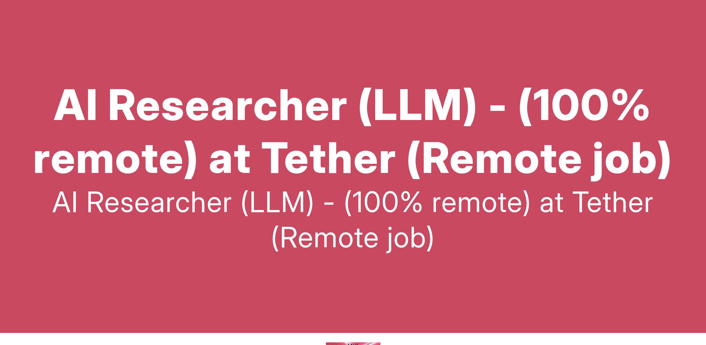 AI Researcher (LLM) - (100% remote) at Tether (Remote job)