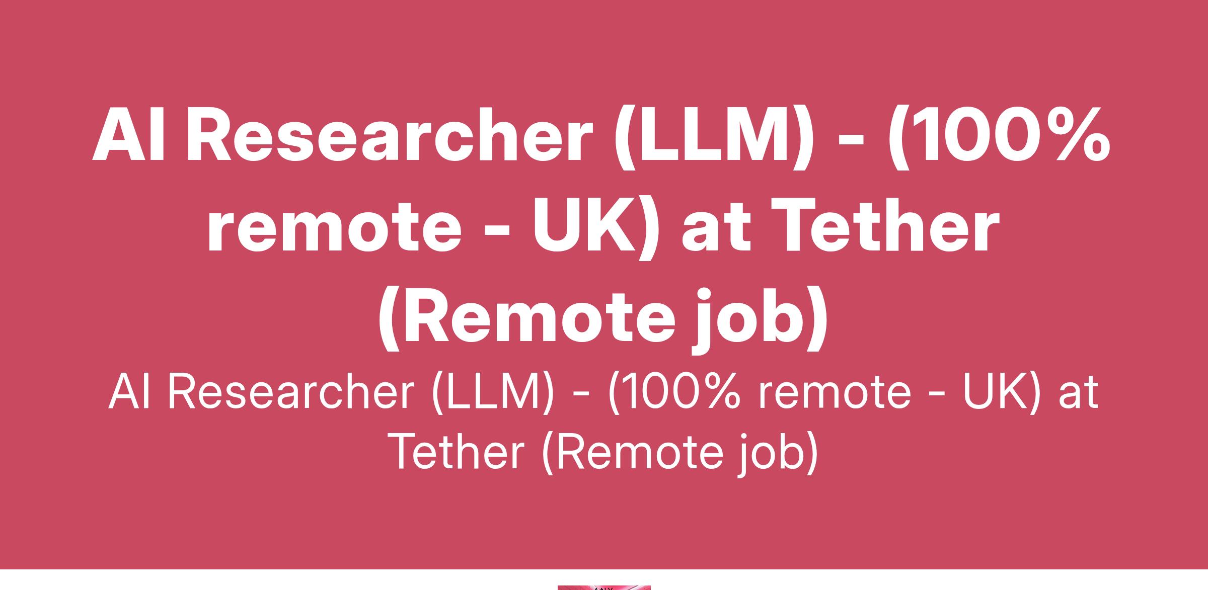 AI Researcher (LLM) - (100% remote - UK) at Tether (Remote job)