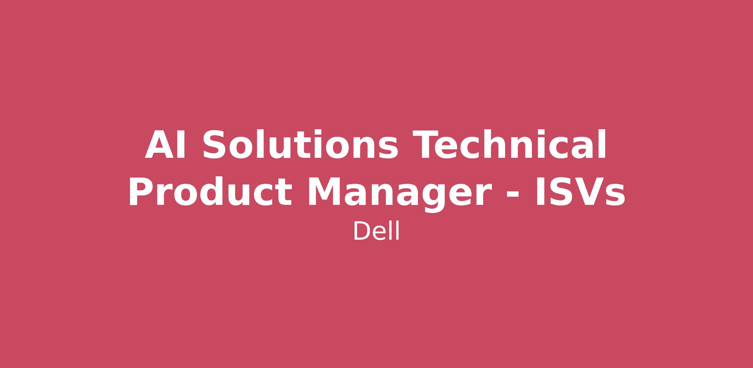 AI Solutions Technical Product Manager AI Product Management at Dell is a fast-paced environment where innovative thinking is prized. Our team focuses on defining and delivering differentiated products and solutions that enable customers to adopt and scale AI with confidence. We lead products from strategy and planning through production, release, and continuous improvement—working cross‑paced environment where innovative thinking is prized. Our team focuses on defining and delivering differentiated products and solutions that enable customers to adopt and scale AI with confidence. We lead products from strategy and planning through production, release, and continuous improvement—working cross functionally to ensure alignment across engineering, solutions, ecosystem partners, and go‑functionally to ensure alignment across engineering, solutions, ecosystem partners, and go‑to‑market teams.Join us to do the best work of your career and make a profound social impact as a Technical Product Manager – AI ISV Partner Program on our AI Solutions and Ecosystem team at Dell Technologies located in Hopkinton, MA or Austin/Round Rock TXWhat You’ll AchieveAs a Technical Product Manager for the AI ISV Partner Program, you will drive the strategy, evolution, and execution of Dell’s AI ecosystem for growth and community ISVs. This role blends AI industry domain knowledge, AI platform strategy, and partner ecosystem experience.You will define and prioritize AI use cases across the AI landscape, identify ecosystem gaps, guide ISV partner strategy, and serve as a trusted technical and business interface to enterprise customers. Your work will directly shape how Dell enables AI adoption across horizontal core business functions such as sales, marketing, HR, operations and other functions.You Will:Own and prioritize horizontal AI use‑case and workloads spanning core business unit use cases such as sales, marketing, HR, operationsIdentify portfolio gaps and guide ISV partner strategy, including prioritization, onboarding, and ecosystem investmentsEngage directly with Enterprise and SMB customers, translating business and regulatory needs into actionable prioritiesTrack industry and regulatory trends to identify new opportunities and keep Dell’s FinTech AI ecosystem ahead of market demandLead cross‑functionally for execution across engineering, solutions, partner enablement, validation, and GTM teamsTake the First Step Toward Your Dream CareerEvery Dell Technologies team member brings something unique to the table. Here’s what we’re looking for with this role:Essential Requirements6+ years of experience in technical product management, AI platforms, or ecosystem strategyStrong understanding of how enterprise companies operateKnowledge of AI/ML workloads and architectures Proven experience defining use case‑case frameworks, portfolio strategy, and partner ecosystemsDemonstrated ability to engage directly with customers at a technical and business level, excellent communication and presentation skillsDesirable RequirementsBachelor’s degree in Computer Science, Engineering, or related field; advanced degree preferred. Experience shaping AI solutions for highly regulated industriesExperience working with AI ISVs, or regulated enterprise software ecosystems, Dell AI platforms or comparable AI infrastructure ecosystems (NVIDIA, hyperscalers, enterprise data platforms)Compensation Dell is committed to fair and equitable compensation practices. The salary range for this position is $156,400. - $202,400.Benefits and Perks of working at Dell Technologies Your life. Your health. Supported by your benefits. You can explore the overall benefits experience that awaits you as a Dell Technologies team member — right now at MyWellatDell.comWho we areWe believe that each of us has the power to make an impact. That’s why we put our team members at the center of everything we do. If you’re looking for an opportunity to grow your career with some of the best minds and most advanced tech in the industry, we’re looking for you.Dell Technologies is a unique family of businesses that helps individuals and organizations transform how they work, live and play. Join us to build a future that works for everyone because Progress Takes All of Us.Dell Technologies is committed to the principle of equal employment opportunity for all employees and to providing employees with a work environment free of discrimination and harassment. Read the full Equal Employment Opportunity Policy here.
