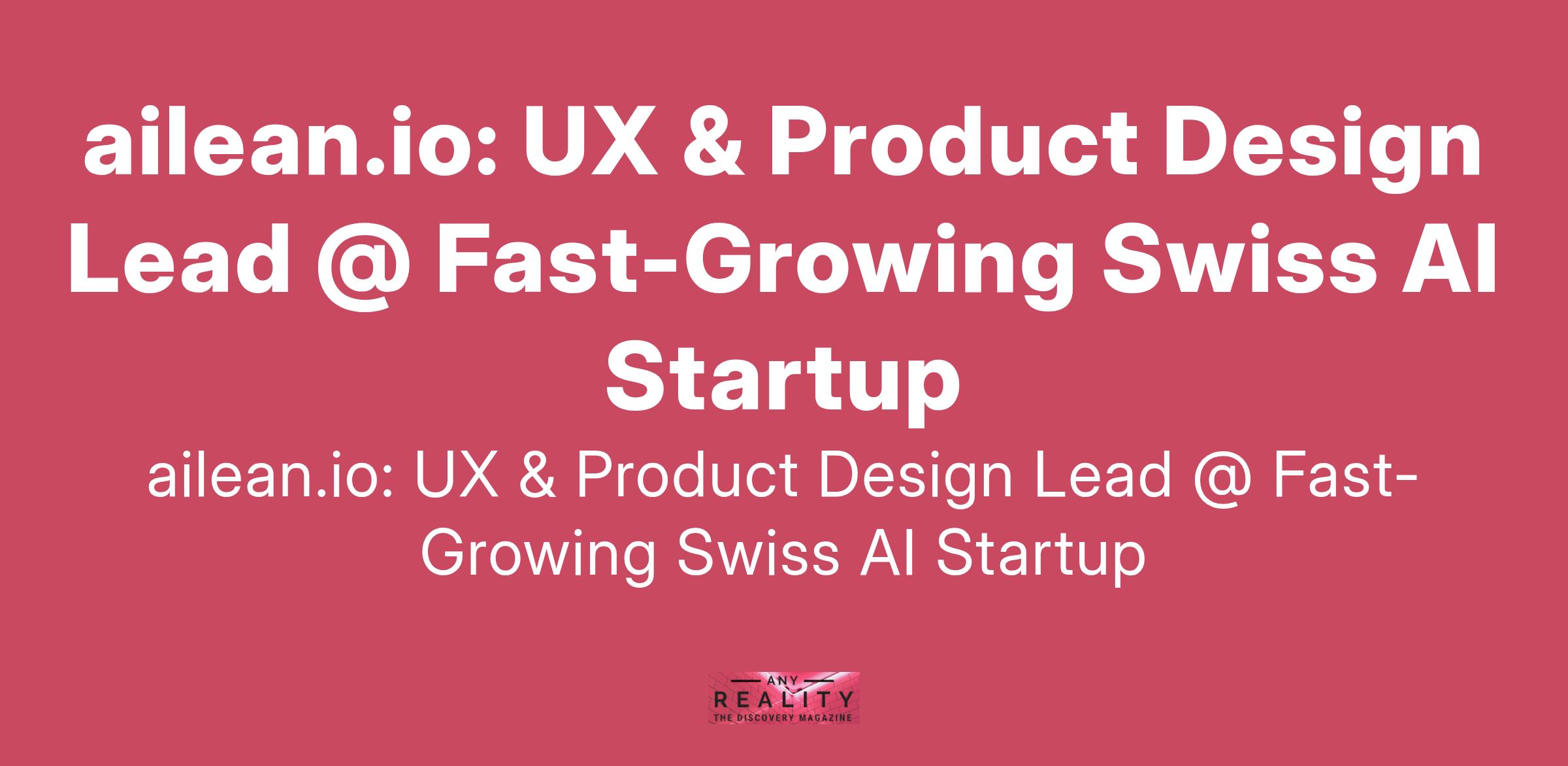 ailean is a fast-growing Swiss AI startup in the hospitality & real estate sector, and we’re looking for a hands-on UX & Product Design Lead to rethink and redefine how users interact with our product.