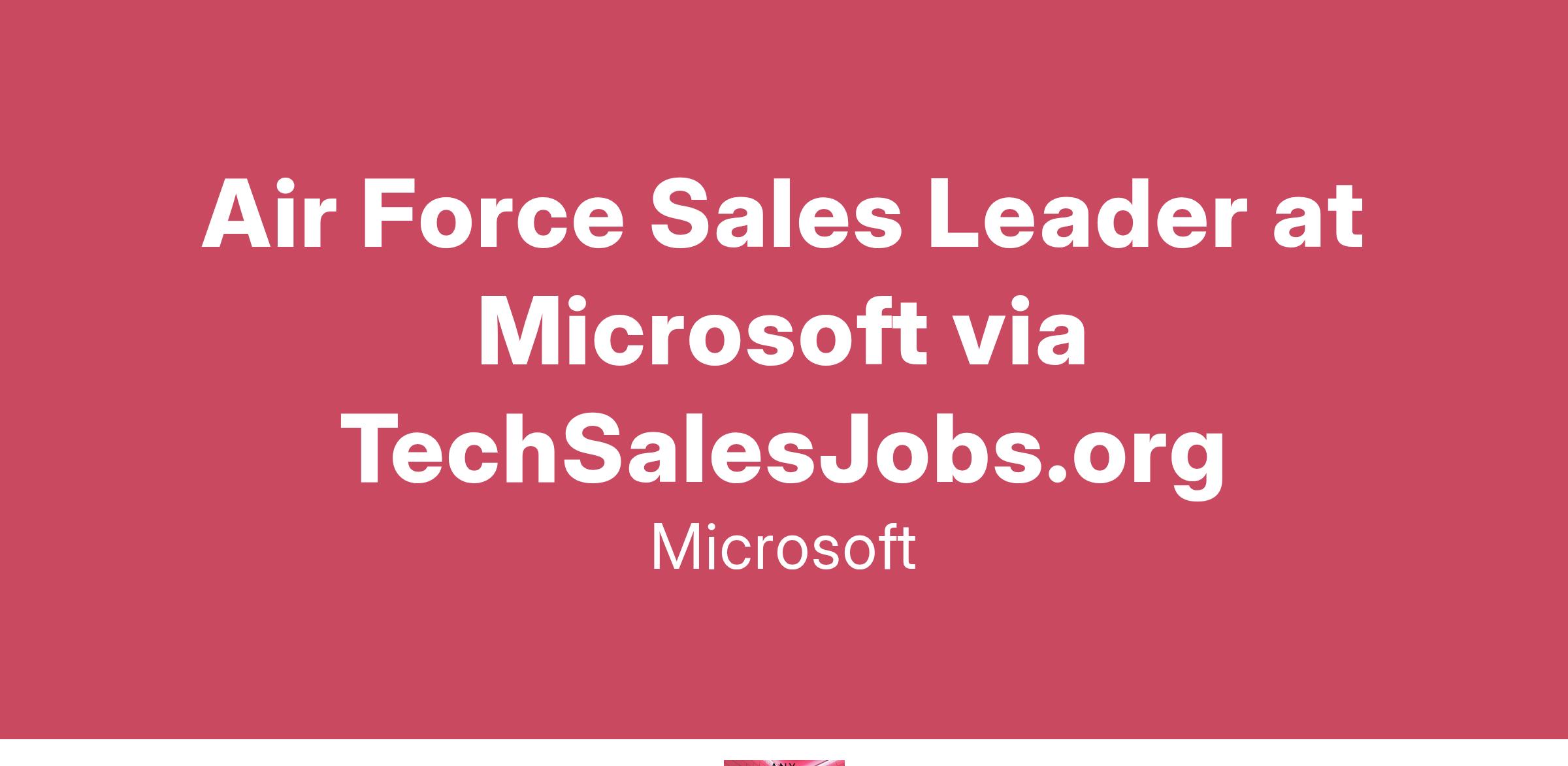 We are looking to hire a Air Force Sales Leader to join Microsoft Federal.