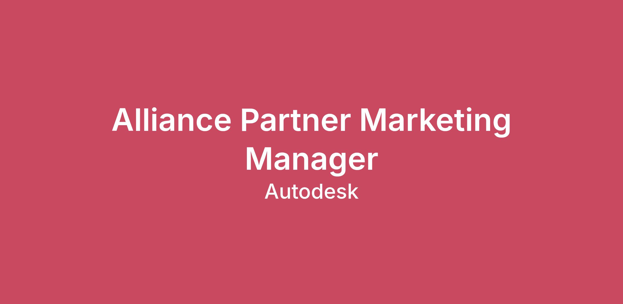 Job Requisition ID #25WD94474Position OverviewThe Alliance Partner Marketing Manager owns the planning and execution of joint go-to-market (GTM) programs with strategic alliance partners, including major cloud and platform partners (AWS) whose technologies and solutions extend Autodesk’s platform and industry offerings.This role works closely with Alliance Management, Industry Marketing, Demand Generation, and Sales teams to bring joint solutions to market through integrated co-marketing programs that drive awareness, adoption, and measurable pipeline impact. Success in this role is defined by strong partner collaboration, high-quality GTM execution, and contribution to pipeline and revenue outcomes.ResponsibilitiesOwn the planning and execution of joint go-to-market programs with strategic alliance partners, aligned to shared business objectives and target audiencesTranslate alliance strategy into integrated co-marketing plans, campaigns, and launches that clearly position joint solutions and use casesPartner closely with Alliance Management and Industry Marketing to align messaging, positioning, and industry-specific value propositionsPlan and execute co-branded campaigns, promotions, and launches aligned to strategic cloud alliances and marketplacesDevelop and scale marketing motions across cloud marketplaces (e.g., AWS Marketplace), including co-sell, referral, and marketplace-driven demand programsServe as the primary marketing point of contact for assigned alliance partners, managing joint planning, execution, timelines, and approvalsCoordinate cross-functionally with partner marketing teams, demand generation, and sales to ensure effective execution and field readinessEnsure consistency and brand alignment across all joint marketing assets and programsTrack, analyze, and report on program performance, including engagement, pipeline contribution, and sourced opportunitiesUse performance insights to optimize GTM programs and continuously improve alliance marketing effectivenessContribute to partner planning, quarterly reviews, and the evolution of alliance marketing best practices and processesMinimum Qualifications5+ years of experience in Alliance or Platform & Marketplace marketing, preferably in SaaS or technology environmentsProven experience executing joint go-to-market and co-marketing programs with strategic partnersComfort working with large, complex partner organizations and their marketing and sales teamsStrong project management skills, with the ability to manage multiple initiatives and stakeholders simultaneouslyExperience connecting marketing programs to pipeline and revenue outcomes using data and performance metricsExcellent written and verbal communication skillsAbility to operate effectively in a cross-functional, matrixed organizationBachelor’s degree in marketing, business, or a related field, or equivalent practical experienceWillingness to travel up to 25%#LI-KM1Learn MoreAbout AutodeskWelcome to Autodesk! Amazing things are created every day with our software – from the greenest buildings and cleanest cars to the smartest factories and biggest hit movies. We help innovators turn their ideas into reality, transforming not only how things are made, but what can be made.We take great pride in our culture here at Autodesk – it’s at the core of everything we do. Our culture guides the way we work and treat each other, informs how we connect with customers and partners, and defines how we show up in the world.When you’re an Autodesker, you can do meaningful work that helps build a better world designed and made for all. Ready to shape the world and your future? Join us!BenefitsFrom health and financial benefits to time away and everyday wellness, we give Autodeskers the best, so they can do their best work. Learn more about our benefits in the U.S. by visiting https://benefits.autodesk.com/Salary transparencySalary is one part of Autodesk’s competitive compensation package. For U.S.-based roles, we expect a starting base salary between $103,000 and $183,920. Offers are based on the candidate’s experience and geographic location, and may exceed this range. In addition to base salaries, our compensation package may include annual cash bonuses, commissions for sales roles, stock grants, and a comprehensive benefits package.Equal Employment Opportunity At Autodesk, we're building a diverse workplace and an inclusive culture to give more people the chance to imagine, design, and make a better world. Autodesk is proud to be an equal opportunity employer and considers all qualified applicants for employment without regard to race, color, religion, age, sex, sexual orientation, gender, gender identity, national origin, disability, veteran status or any other legally protected characteristic. We also consider for employment all qualified applicants regardless of criminal histories, consistent with applicable law.Diversity & BelongingWe take pride in cultivating a culture of belonging where everyone can thrive. Learn more here: https://www.autodesk.com/company/diversity-and-belongingAre you an existing contractor or consultant with Autodesk? Please search for open jobs and apply internally (not on this external site).