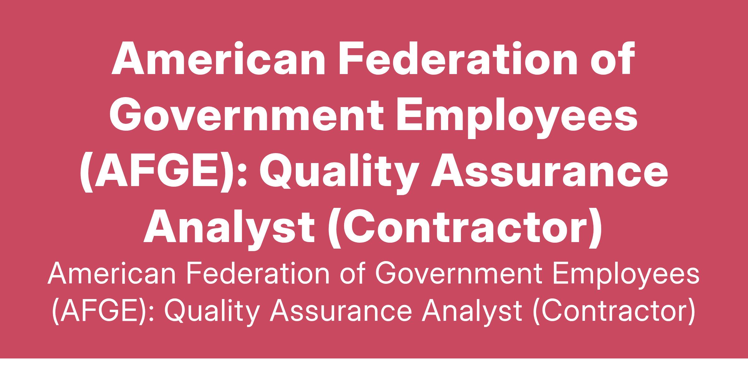 To apply: https://weworkremotely.com/remote-jobs/american-federation-of-government-employees-afge-quality-assurance-analyst-contractor