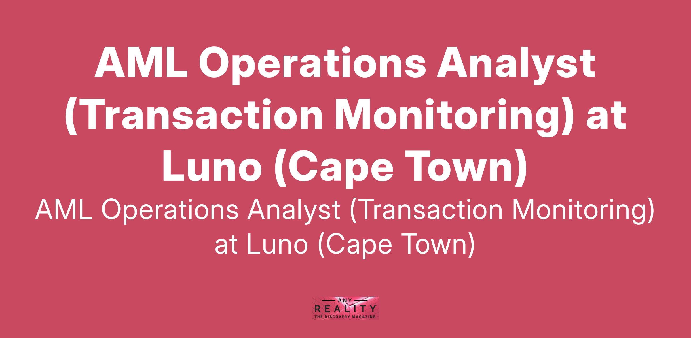 AML Operations Analyst (Transaction Monitoring) at Luno (Cape Town)
