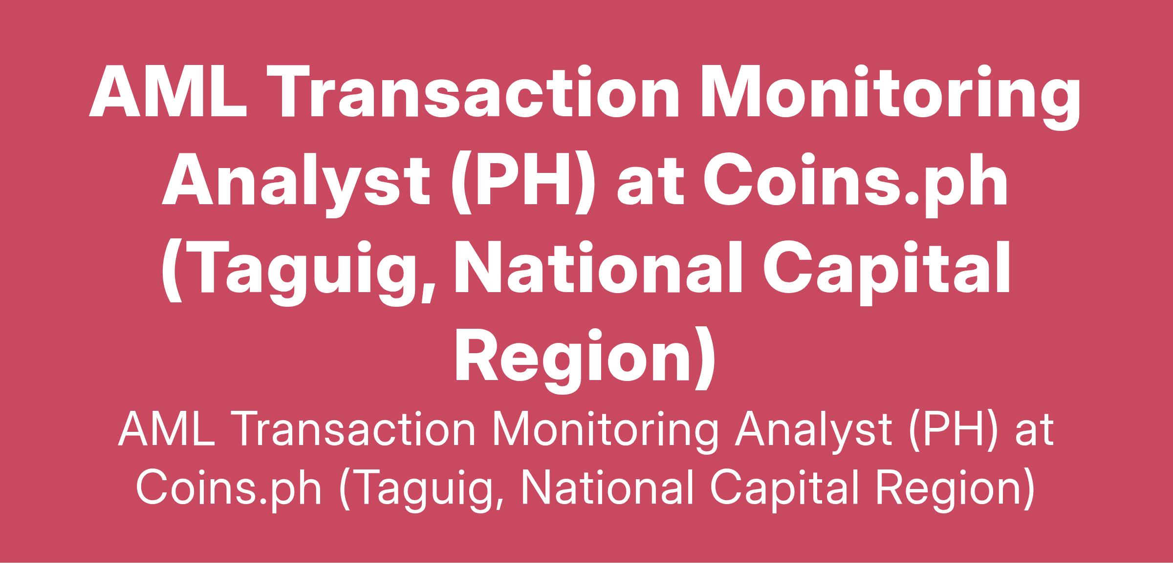 AML Transaction Monitoring Analyst (PH) at Coins.ph (Taguig, National Capital Region)