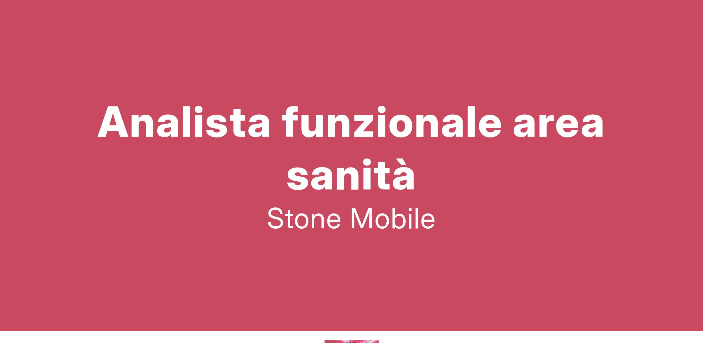 Stone Mobile ricerca per importante cliente operante nell'area sanità, 1 Analista funzionale Il candidato ideale sarà in possesso dei seguenti requisiti: 5+ anni di esperienza nel ruolo di analista funzionale Solida esperienza su analisi e redazione documenti funzionali Solida competenza su SQL Gradita ma non necessaria esperienza nel campo medicale e dei servizi sanitari Disponibilità ad un ibrido su Cinisello Balsamo.