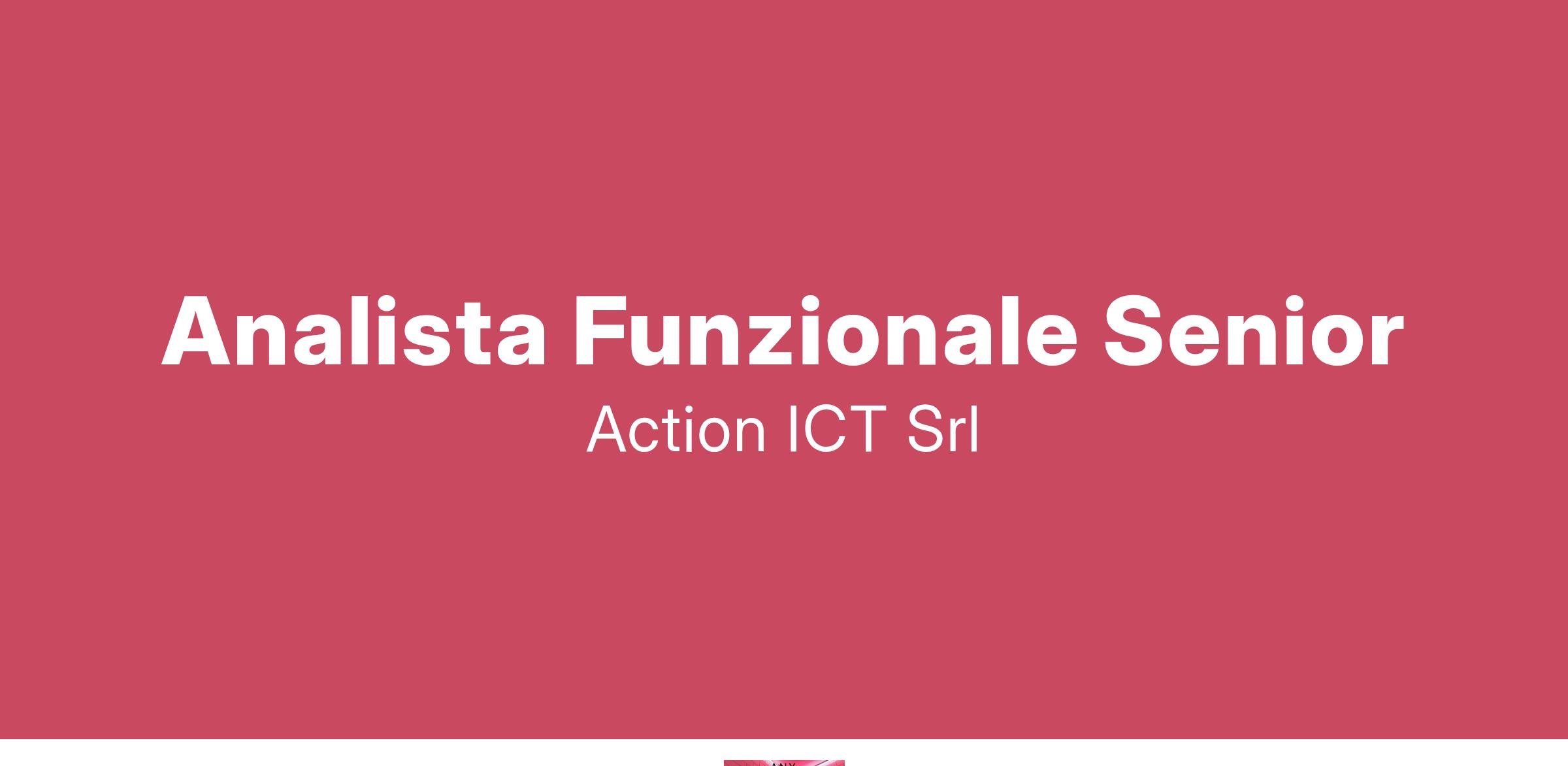 Competenze richieste: La persona selezionata svolgerà attività di analisi funzionale rapportandosi con il Project Manager e il team di sviluppo. Siamo alla ricerca di profili con i seguenti requisiti: a partire da 6 anni di esperienza nella posizione di Analista su applicazioni software capacità di rapportarsi ai diversi stakeholder conoscenza della lingua inglese conoscenza del linguaggio SQL Dinamicità , proattività , capacità di problem solving Conoscenza dei linguaggi XML, JSON Rappresentano un valore aggiuntivo: Conoscenze Cloud Conoscenza della lingua Francese Conoscenza del settore Finance Laurea in materie Scientifiche o affini Inviaci la tua candidatura visitando il nostro sito web action-ict.it alla sezione " Lavora con noi ": https://www.action-ict.com/it/careers/ Se non trovi l'annuncio specifico, utilizza la voce " Candidatura Spontanea " presente a fondo pagina.